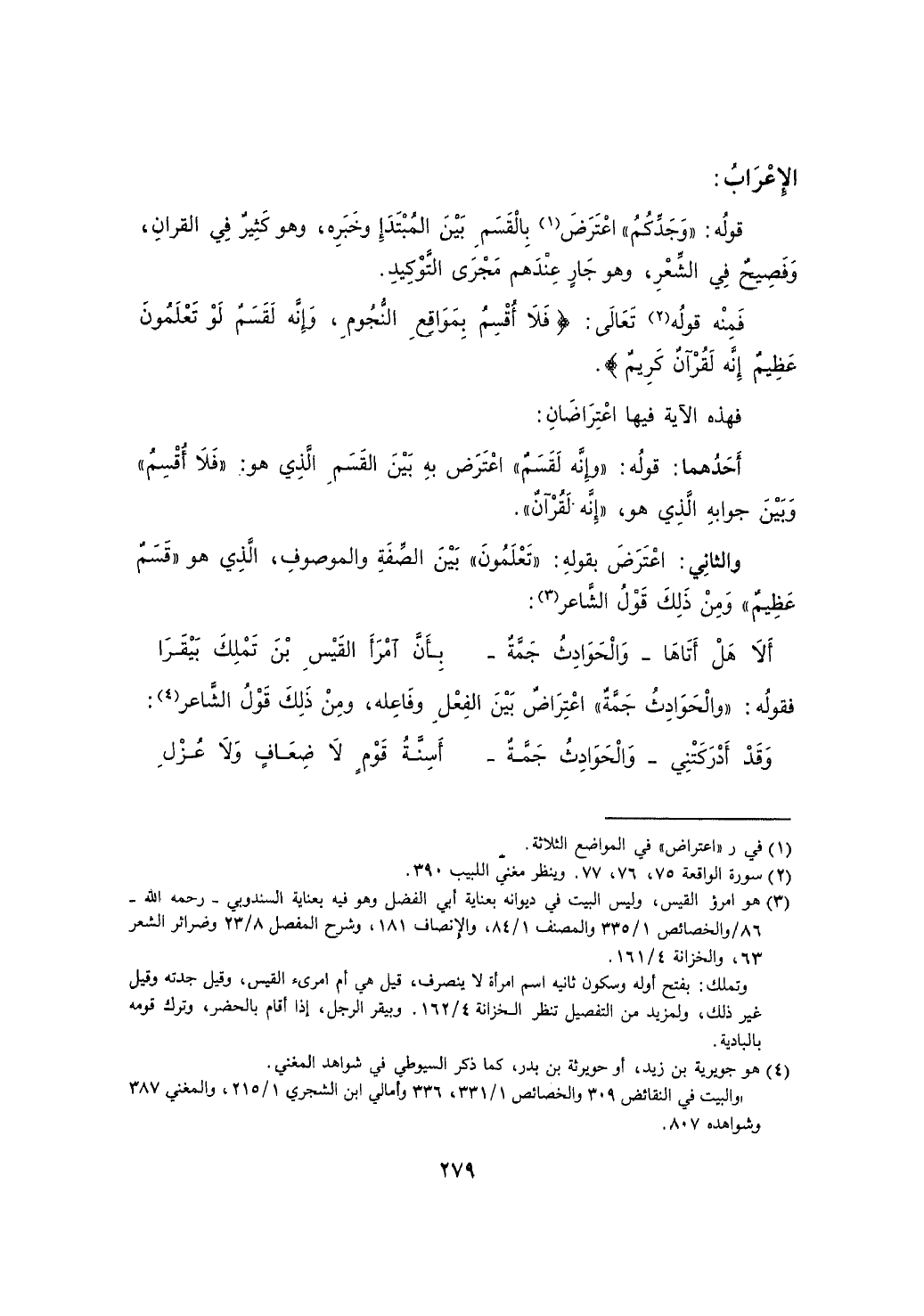 فهذه الآية فيها اعتراضان: أحدهما: قوله: "وإنه لقسم" اعترض به بين القسم الذي هو: "فلا أقسم" وبين جوابه الذي هو: "إنه لقرآن".