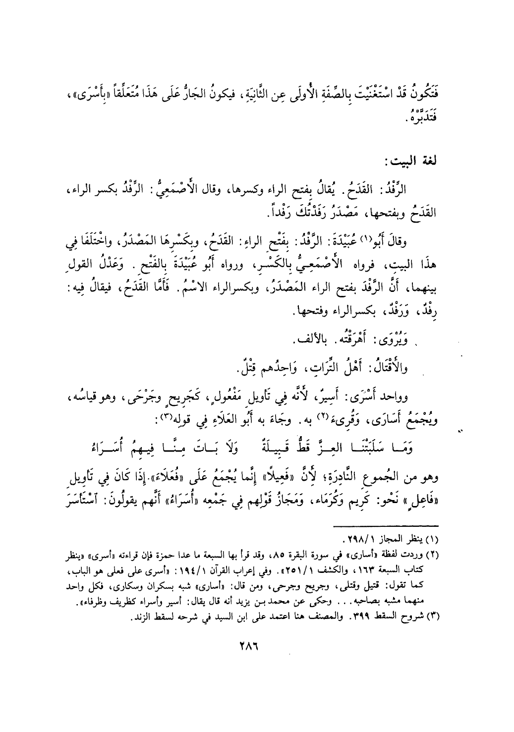 وهو من الجموع النادرة؛ لأن "فعيلاً" إنما يجمع على "فعلاء" إذا كان في تأويل "فاعل" نحو: كريم وكرماء، ومجاز قولهم في جمعه "أسراء" أنهم يقولون: استأسر
