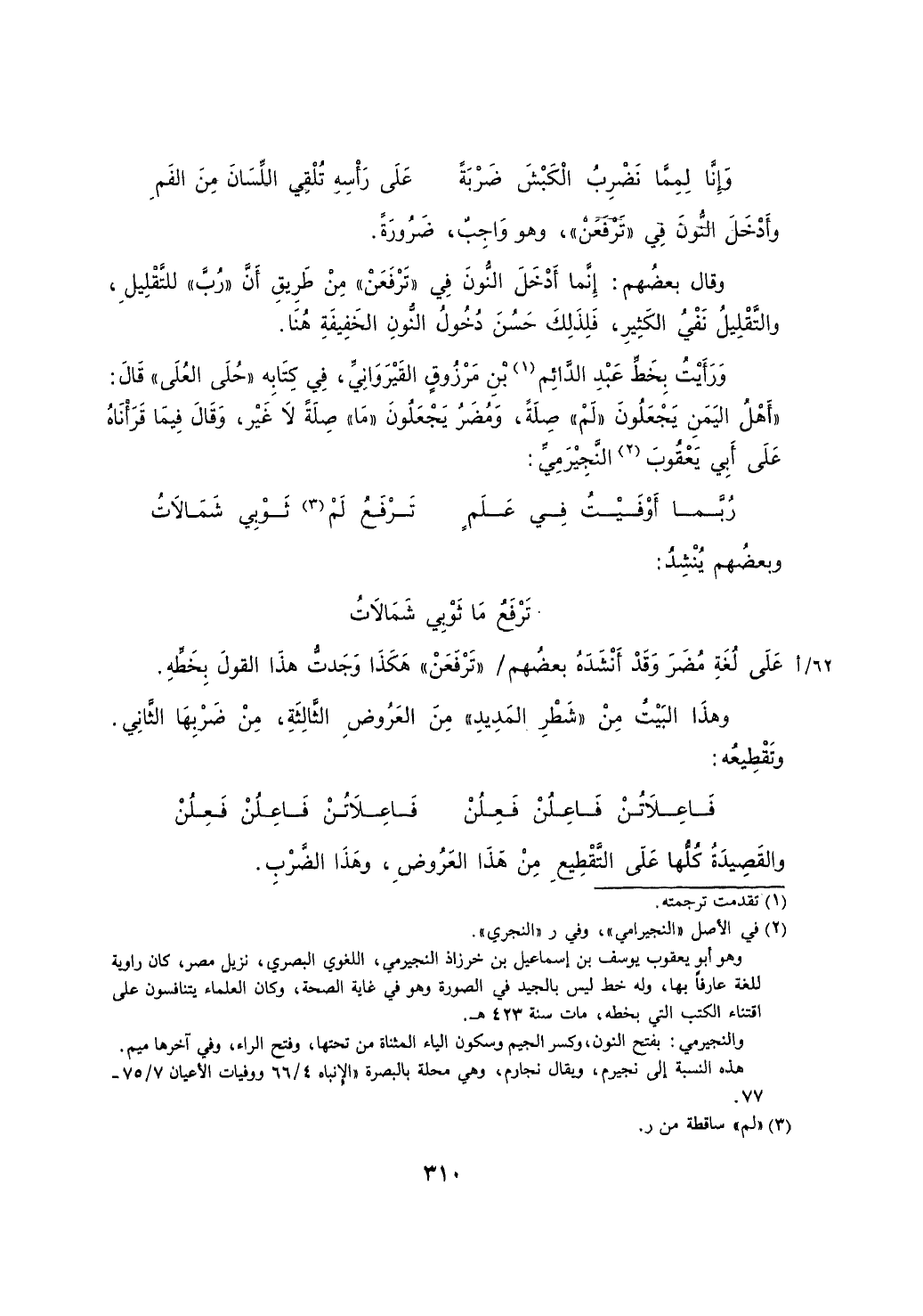 على لغة مضر وقد أنشده بعضهم "ترفعن" هكذا وجدت هذا القول بخطه.