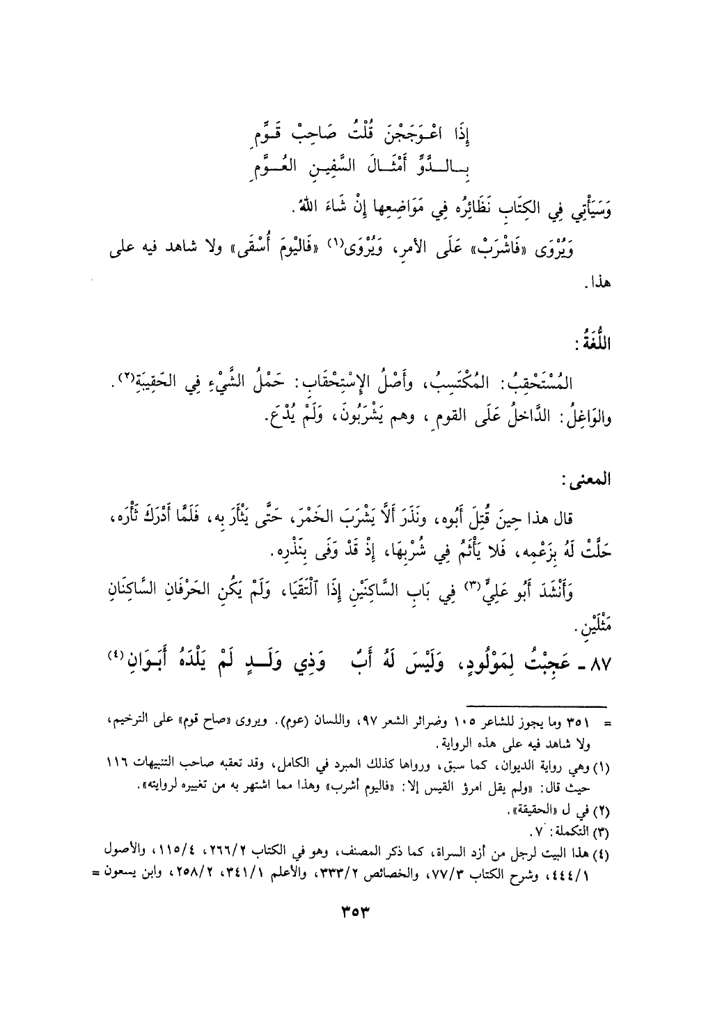 ويروى "فاشرب" على الأمر، ويروى "فاليوم أسقى" ولا شاهد فيه على هذا.