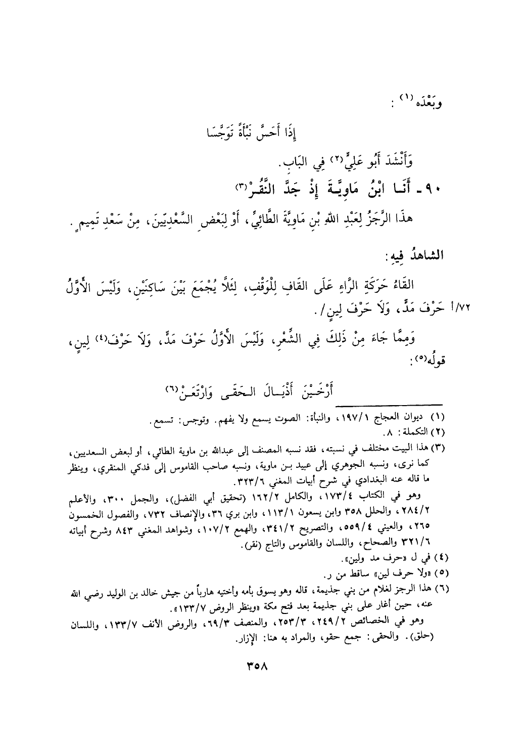 هذا الرجز لعبد الله بن ماوية الطائي، أو لبعض السعديين، من سعد تميم.