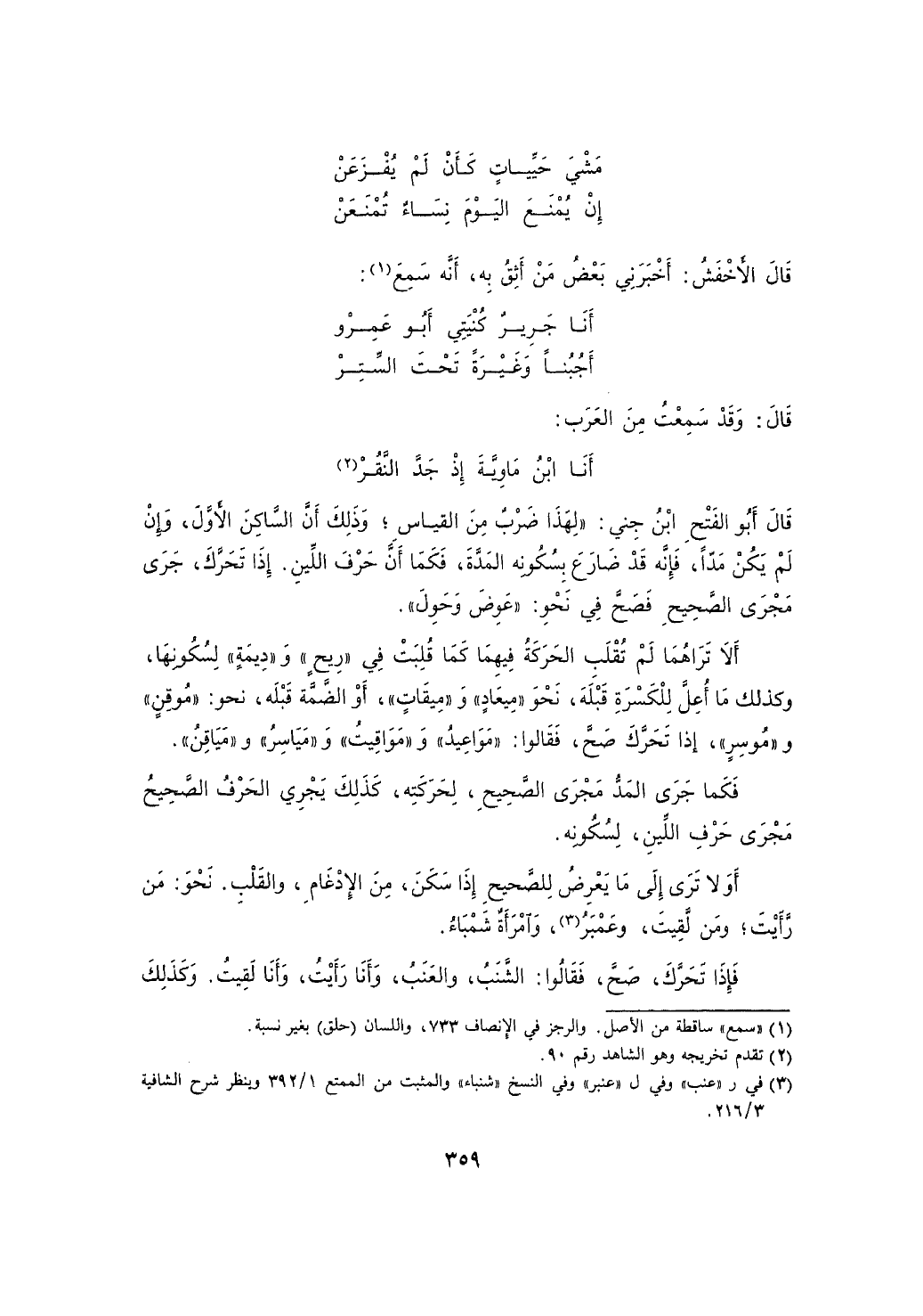 أو لا ترى إلى ما يعرض للصحيح إذا سكن، من الإدغام، والقلب. نحو: من رأيت؛ ومن لقيت، وعمبر، وامرأة شمباء.