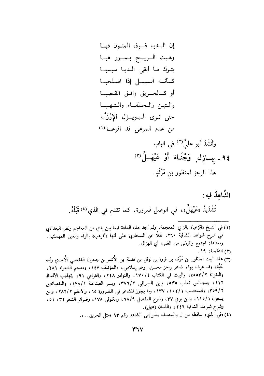 ببازلٍ وجناءَ أوْ عيهلِّ