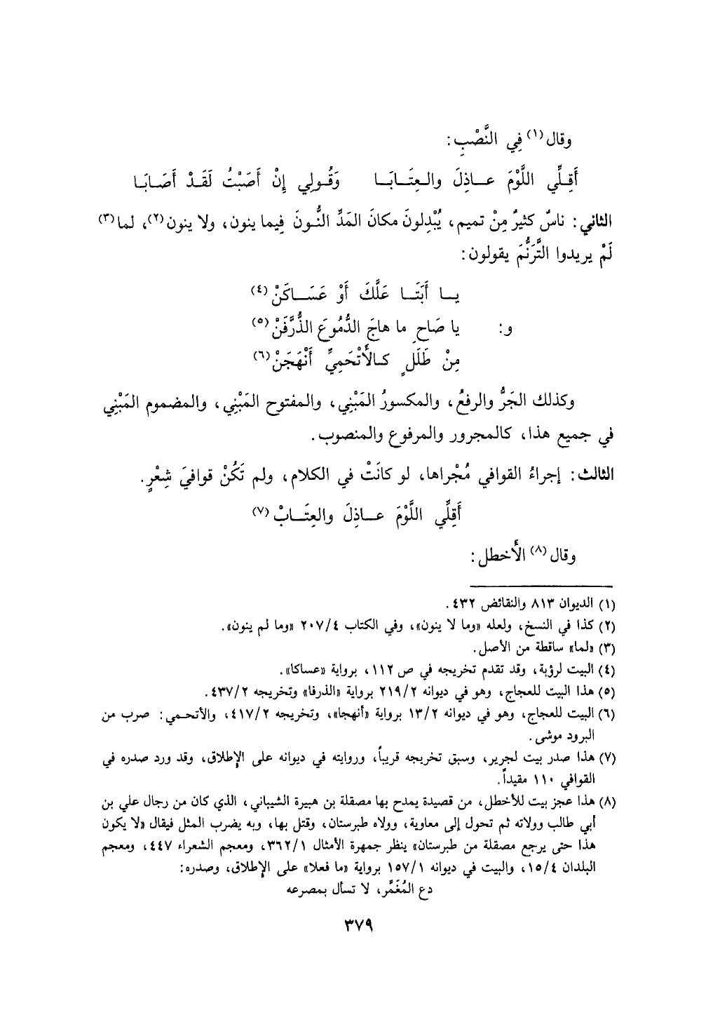 الثاني: ناس كثير من تميم، يبدلون مكان المد النون فيما ينون، ولا ينون، لما لم يريدوا الترنم يقولون: