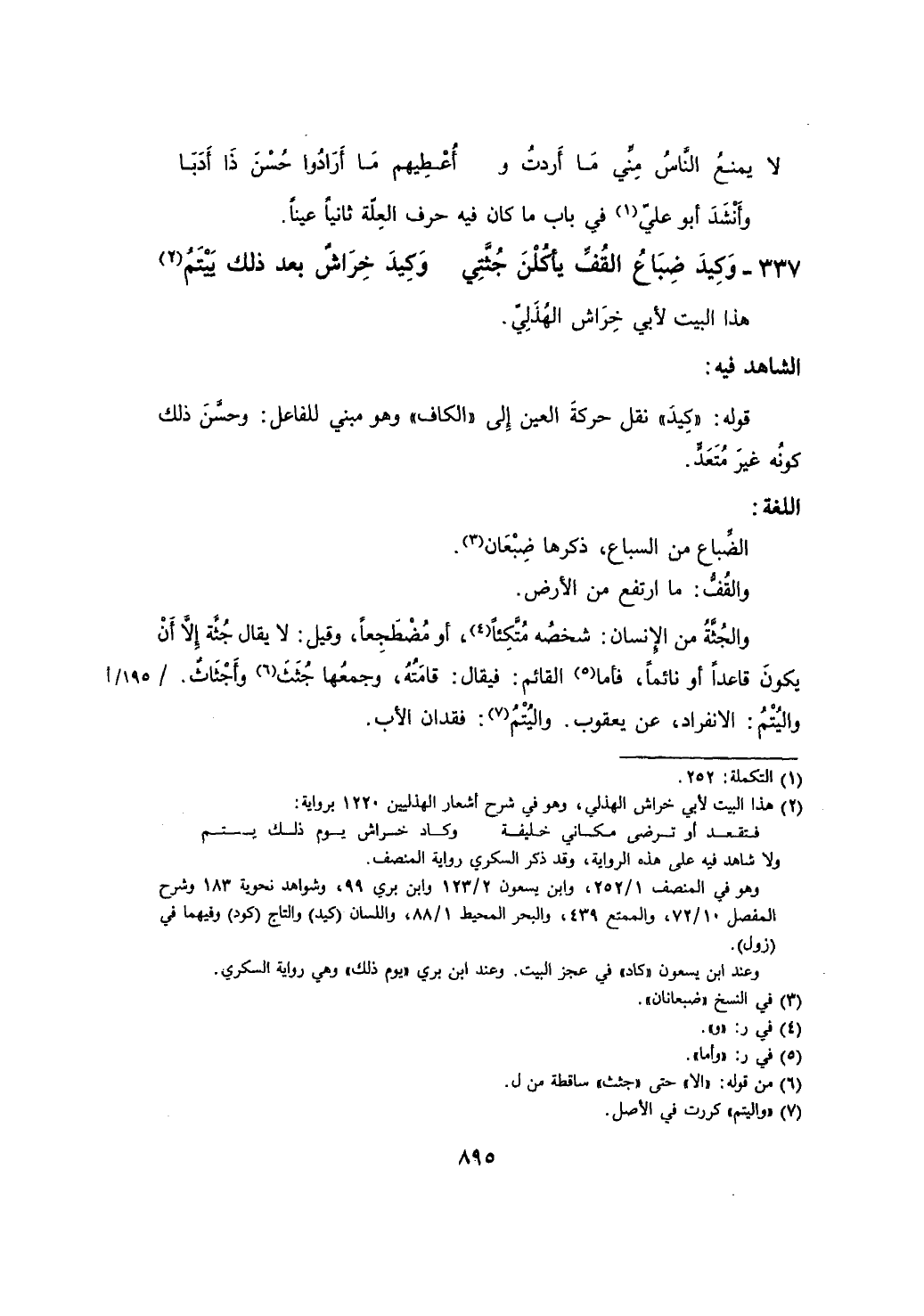 وكيد ضباعُ القفَّ يأكلن جثتي ... وكيدَ خراشٌ بعد ذلك ييتم