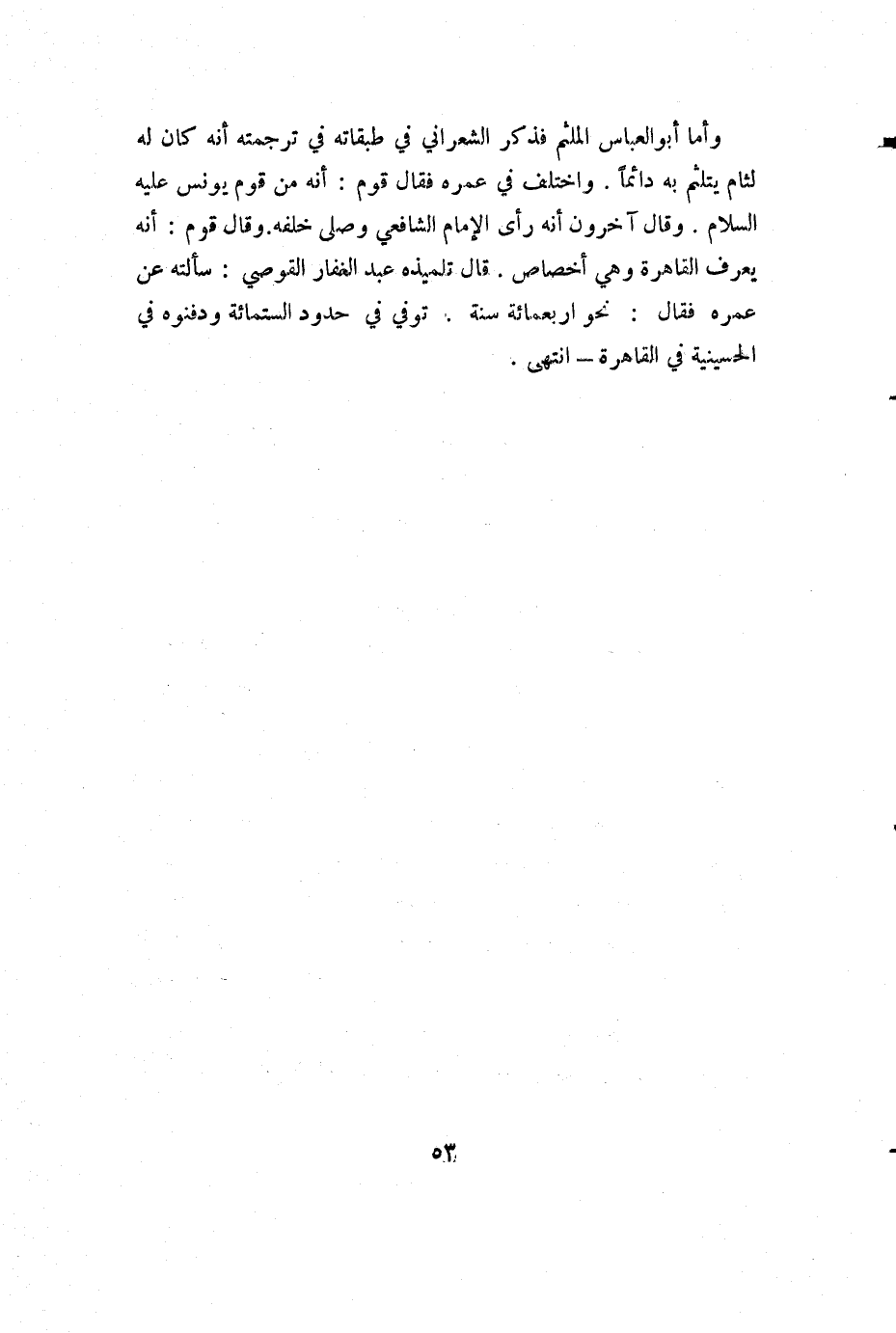 وأما أبو العباس الملثم فذكر الشعراني في طبقاته في ترجمته أنه كان له لثام يتلثم به دائما. واختلف في عمره فقال قوم: أنه من قوم يونس عليه السلام. وقال آخرون أنه رأى الإمام الشافعي وصلى خلفه. وقال قوم: أنه يعرف القاهرة وهي أخصاص. قال تلميذه عبد الغفار القوصي: سألته عن عمره فقال: نحو أربعمائة سنة. توفي في حدود الستمائة ودفنوه في الحسينية في القاهرة - انتهى.