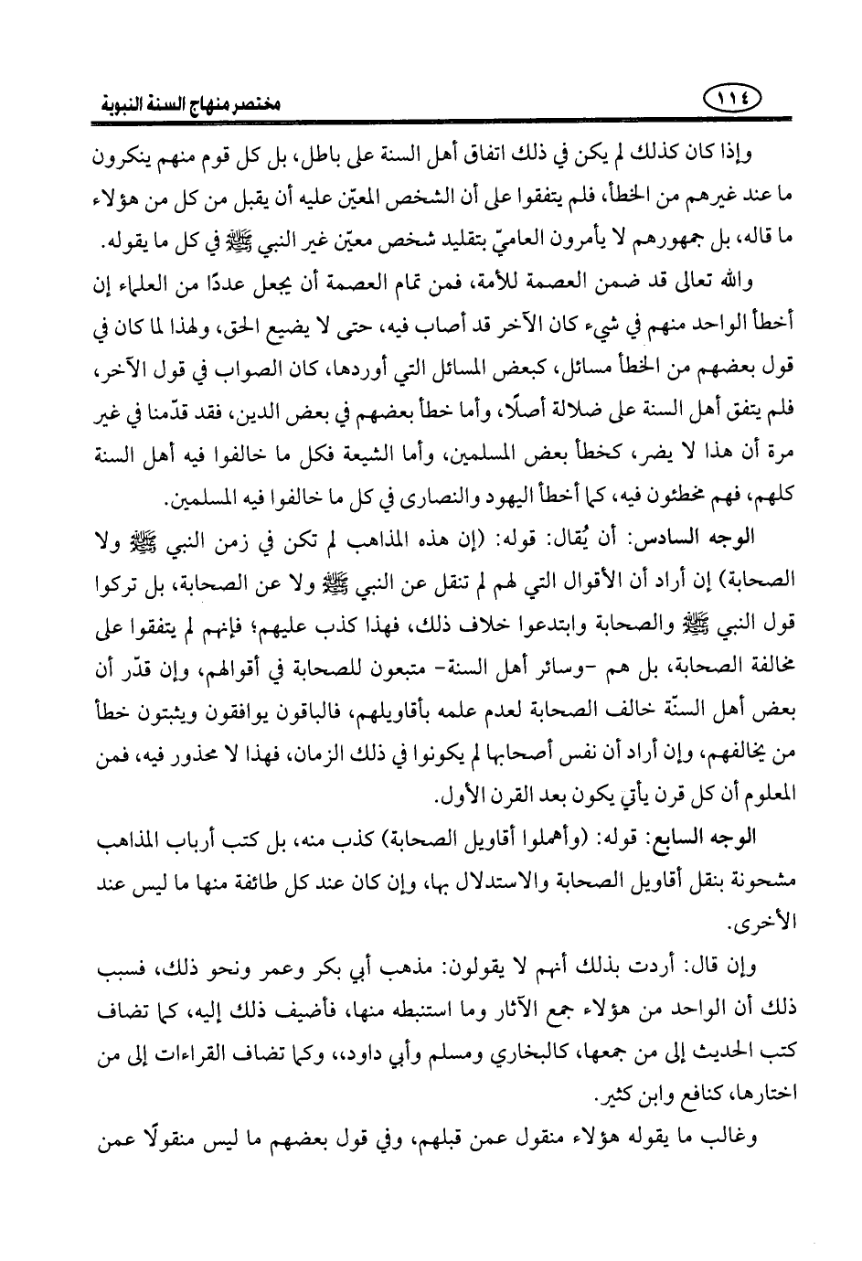 الْوَجْهُ الثَّامِنُ: أَنَّ أَهْلَ السُّنَّةِ لَمْ يَقُلْ أَحَدٌ مِنْهُمْ إِنَّ إِجْمَاعَ الْأَئِمَّةِ الْأَرْبَعَةِ حُجَّةٌ مَعْصُومَةٌ، وَلَا قَالَ: إِنَّ الْحَقَّ مُنْحَصِرٌ فِيهَا، وَإِنَّ مَا خَرَجَ