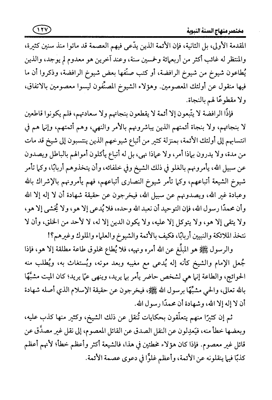 فَتَبَيَّنَ أَنَّهُ لَيْسَ فِي الْإِمَامِيَّةِ جَزْمٌ مَحْمُودٌ اختُصوا بِهِ عَنْ أَهْلِ السُّنَّةِ وَالْجَمَاعَةِ. وَإِنْ قَالُوا: إِنَّا نَجْزِمُ لِكُلِّ شَخْصٍ رَأَيْنَاهُ مُلْتَزِمًا لِلْوَاجِبَاتِ عِنْدَنَا تَارِكًا للمحرمات،