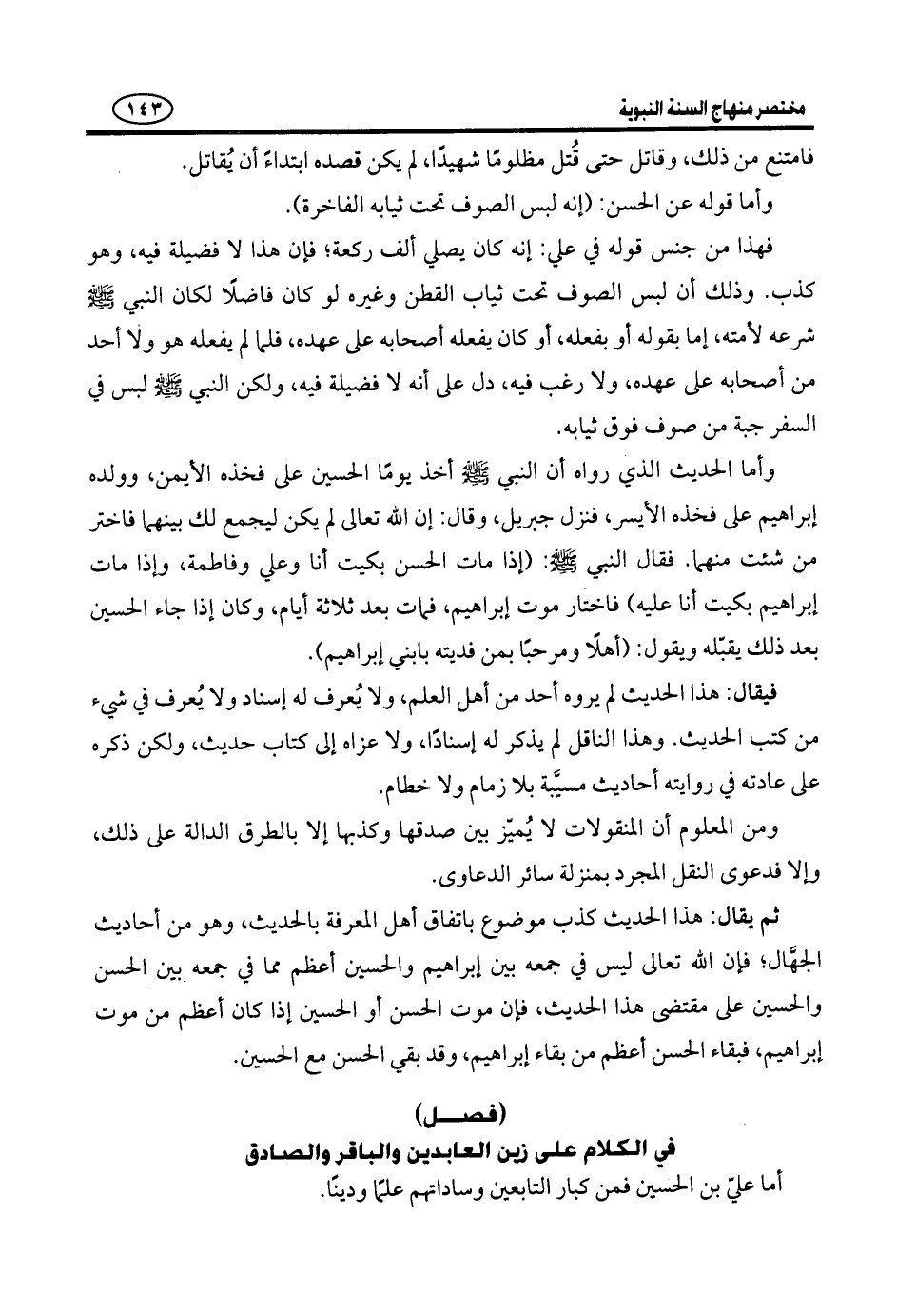 المناقب. وكذلك ما ذَكَرَه من تسمية رسول الله صلى لله عَلَيْهِ وَسَلَّمَ لَهُ سَيِّدَ الْعَابِدِينَ هُوَ شَيْءٌ لَا أَصْلَ لَهُ، وَلَمْ يَرْوِهِ أَحَدٌ مِنْ أَهْلِ الْعِلْمِ وَالدِّينِ.