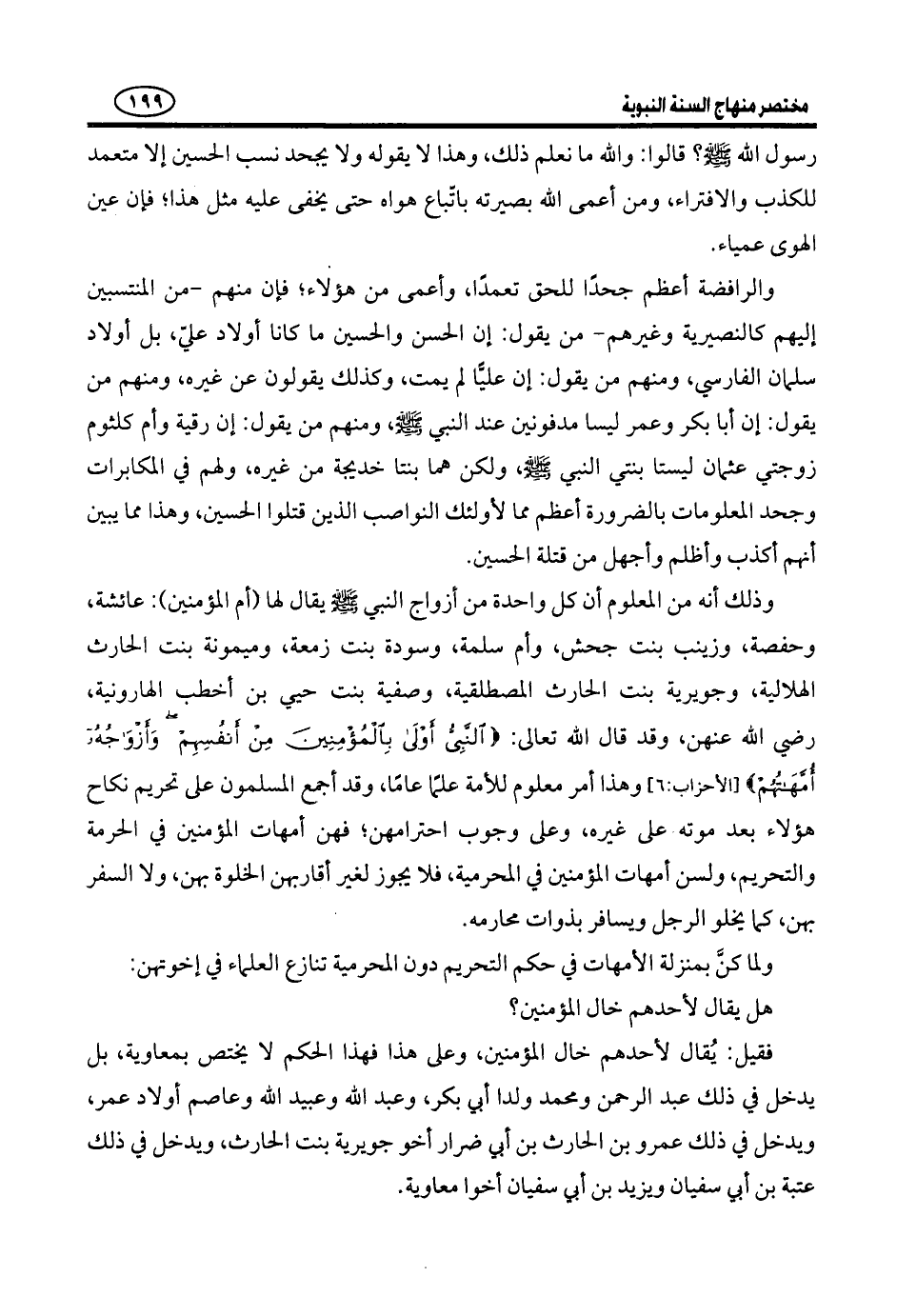 فَإِنْ أَرَادَ عِظَمَ نسبه، فالنسب لاحرمة لَهُ عِنْدَهُمْ، لِقَدْحِهِمْ فِي أَبِيهِ وَأُخْتِهِ. وَأَمَّا أَهْلُ السُّنَّةِ فَإِنَّمَا يُعَظِّمُونَ بِالتَّقْوَى، لَا بِمُجَرَّدِ النَّسَبِ. قَالَ تَعَالَى: {إِنَّ أَكْرَمَكُمْ عِنْدَ اللهِ أَتْقَاكُم} (¬1) . وَإِنْ أَرَادَ عِظَمَ شَأْنِهِ لِسَابِقَتِهِ وَهِجْرَتِهِ وَنُصْرَتِهِ وَجِهَادِهِ، فَهُوَ لَيْسَ مِنَ الصَّحَابَةِ: لَا مِنَ المهاجرين ولا من الْأَنْصَارِ. وَإِنْ أَرَادَ بِعِظَمِ شَأْنِهِ أَنَّهُ كَانَ مِنْ أَعْلَمِ النَّاسِ وأَدْيَنهم، فَلَيْسَ الْأَمْرُ كَذَلِكَ.