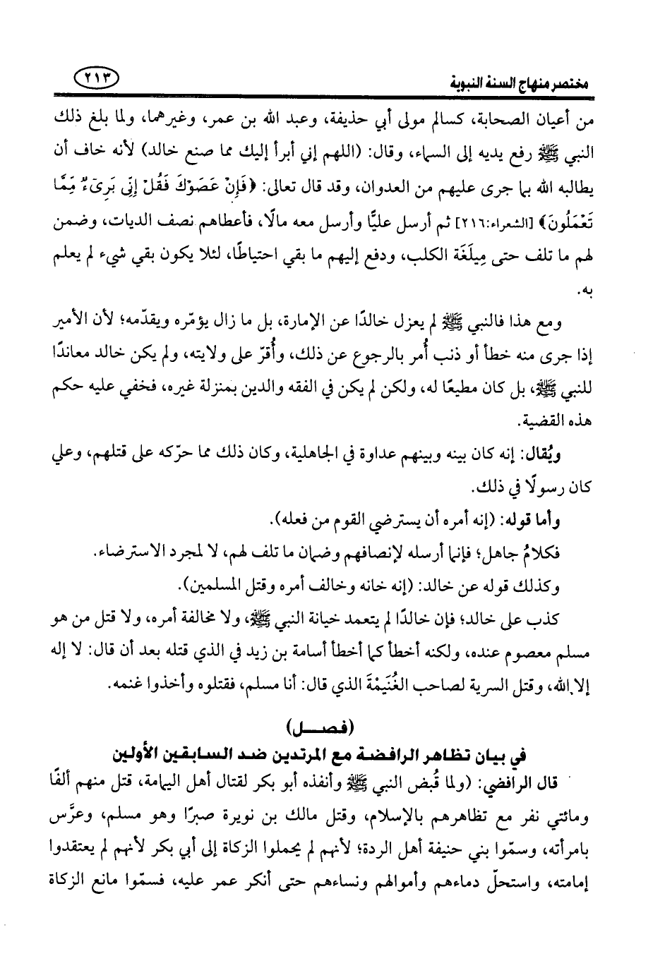 وَالْجَوَابُ بَعْدُ أَنْ يُقَالَ: اللَّهُ أَكْبَرُ عَلَى هَؤُلَاءِ الْمُرْتَدِّينَ الْمُفْتَرِينَ، أَتْبَاعِ الْمُرْتَدِّينَ الَّذِينَ بَرَزُوا بِمُعَادَاةِ اللَّهِ وَرَسُولِهِ وَكِتَابِهِ وَدِينِهِ، وَمَرَقُوا مِنَ الْإِسْلَامِ وَنَبَذُوهُ وَرَاءَ ظُهُورِهِمْ، وَشَاقُّوا اللَّهَ وَرَسُولَهُ وَعِبَادَهُ الْمُؤْمِنِينَ، وَتَوَلَّوْا أَهْلَ الرِّدَّةِ وَالشِّقَاقِ، فَإِنَّ هَذَا الْفَصْلَ وَأَمْثَالَهُ مِنْ كَلَامِهِمْ يُحَقِّقُ أَنَّ هَؤُلَاءِ الْقَوْمَ الْمُتَعَصِّبِينَ عَلَى الصِّدِّيقِ - رَضِيَ اللَّهُ عنه - وحزبه، مِنْ جِنْسِ الْمُرْتَدِّينَ الْكُفَّارِ، كَالْمُرْتَدِّينَ الَّذِينَ قَاتَلَهُمُ الصِّدِّيقُ - رَضِيَ اللَّهُ عَنْهُ -.