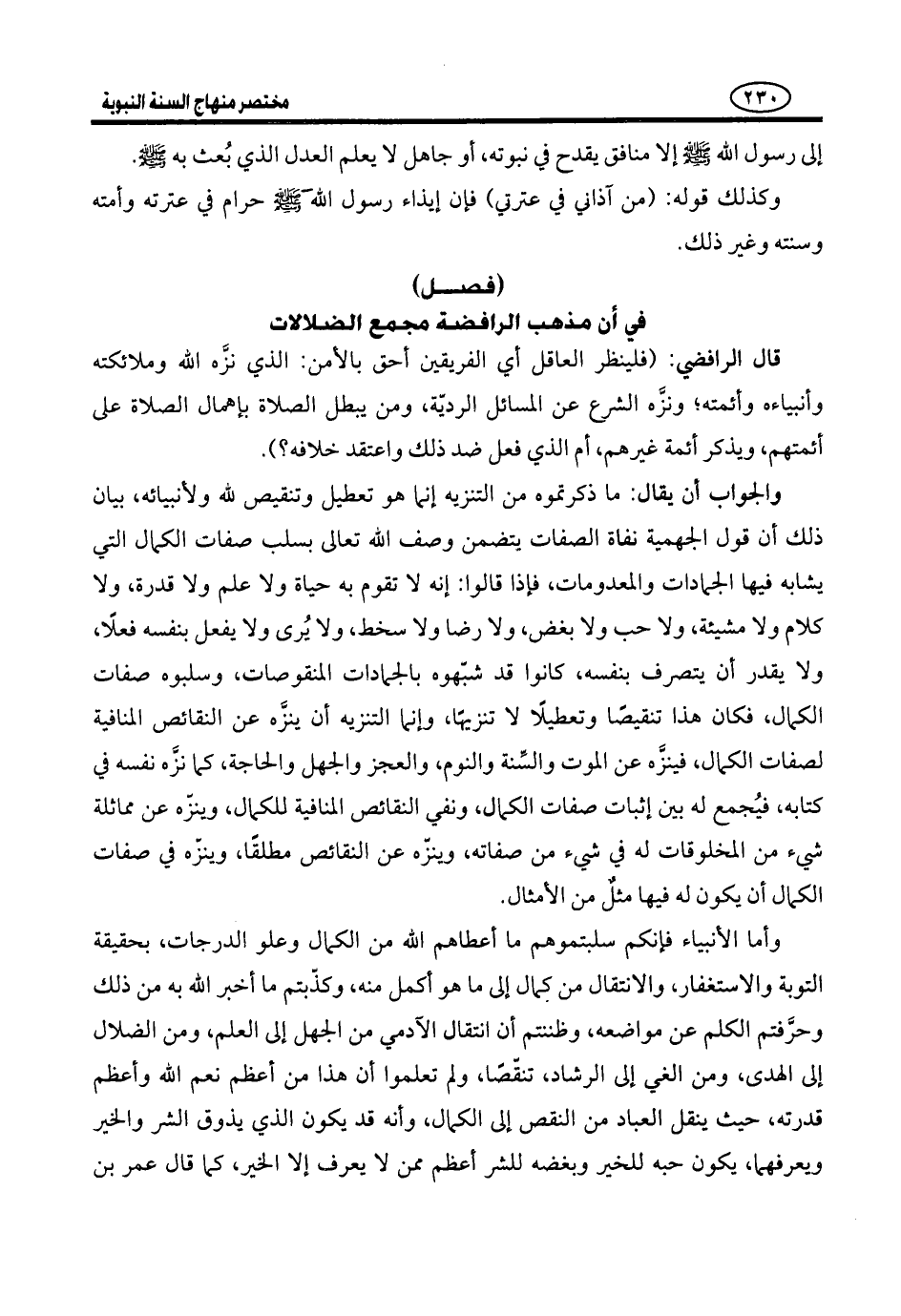 وَأَمَّا تَنْزِيهُ الشَّرْعِ عَنِ الْمَسَائِلِ الرَّدِيَّةِ، فَقَدْ تَقَدَّمَ أَنَّ أهل السنّة لم يتفقوا عَلَى مَسْأَلَةٍ رَدِيَّةٍ، بِخِلَافِ الرَّافِضَةِ؛ فَإِنَّ لَهُمْ مِنَ الْمَسَائِلِ الرَّدِيَّةِ مَا لَا يُوجَدُ لِغَيْرِهِمْ.