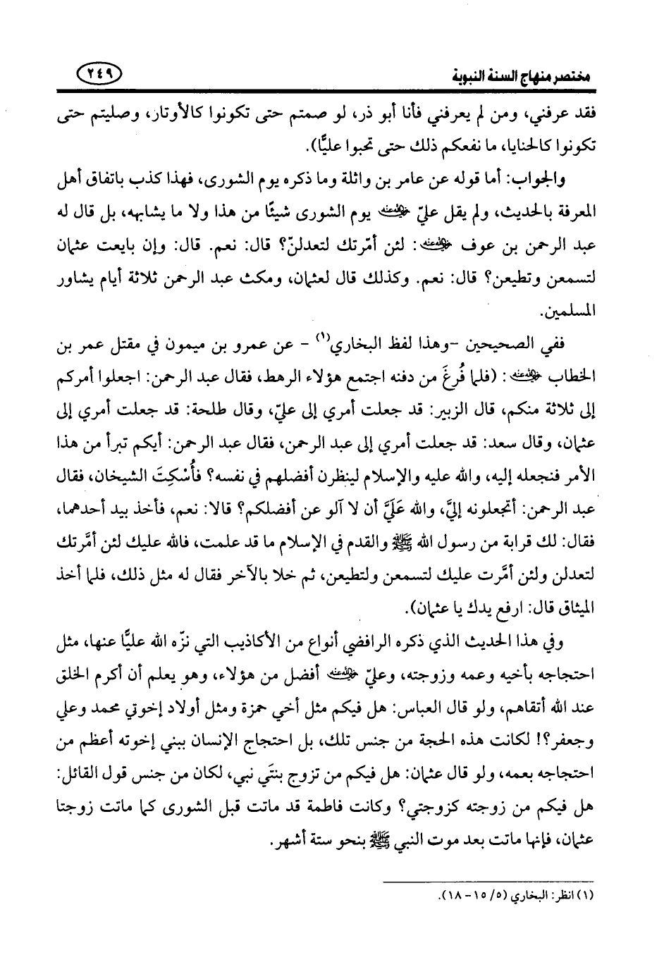 وَفِيهِ أَكَاذِيبُ مُتَعَدِّدَةٌ، مِثْلُ قَوْلِهِ ((مَا سَأَلْتُ اللَّهَ شَيْئًا إِلَّا وَسَأَلْتُ لَكَ مِثْلَهُ)) . وَكَذَلِكَ قَوْلُهُ: ((لَا يُؤَدِّي عَنِّي إِلَّا عَلِيٌّ)) مِنَ الْكَذِبِ.