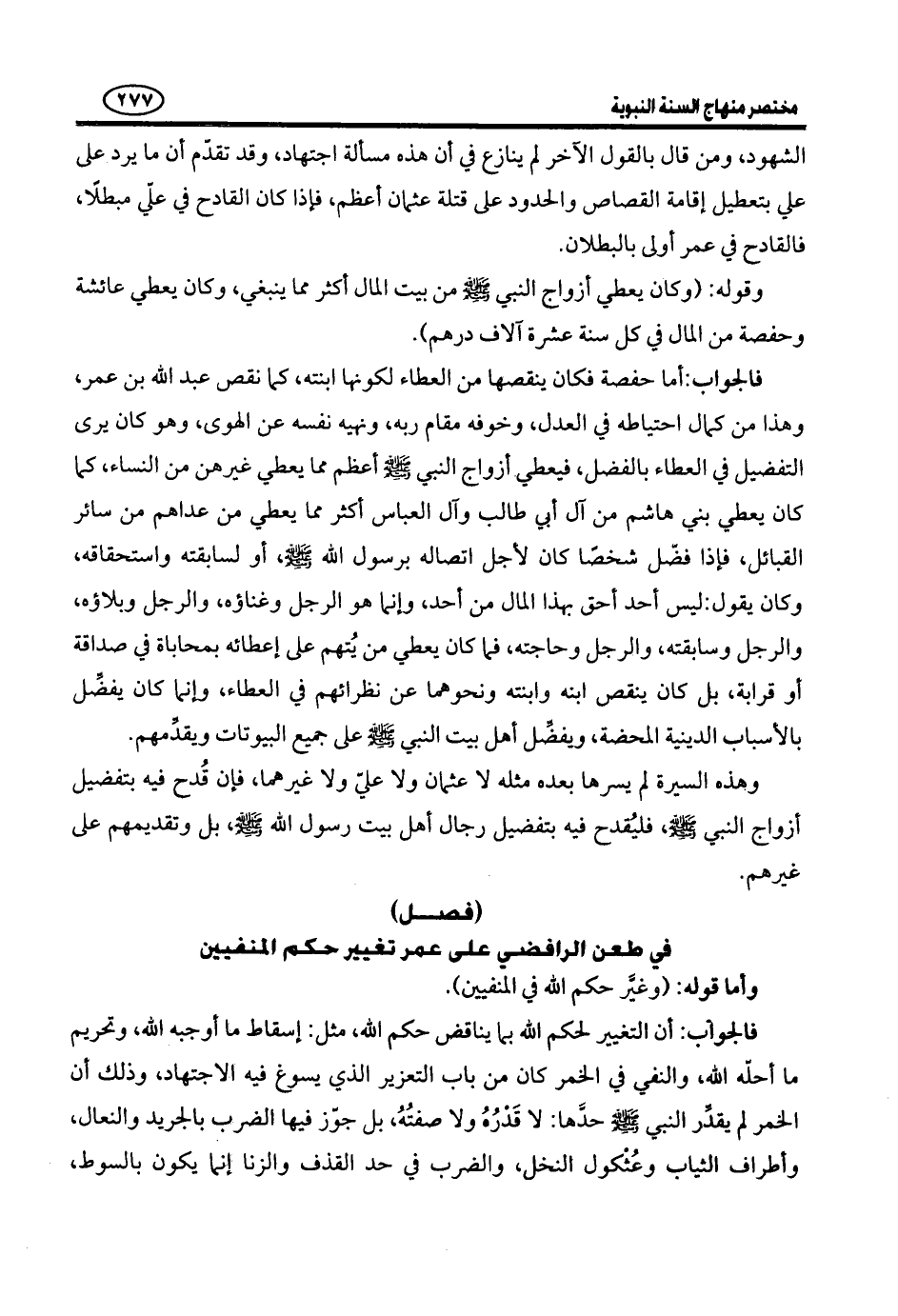 وَالْجَوَابُ: أَنَّ هَذِهِ الْقِصَّةَ إِنْ كَانَتْ صَحِيحَةً، فَلَا تَخْلُو مِنْ أَنْ يَكُونُ عُمَرُ لَمْ يَعْلَمْ أَنَّهَا حَامِلٌ، فَأَخْبَرَهُ عليٌّ بِحَمْلِهَا. وَلَا رَيْبَ أَنَّ الْأَصْلَ عَدَمُ الْعِلْمِ، وَالْإِمَامُ إِذَا لَمْ يَعْلَمْ أَنَّ الْمُسْتَحِقَّةَ لِلْقَتْلِ أَوِ الرَّجْمِ حَامِلٌ، فعرَّفه بَعْضُ النَّاسِ بِحَالِهَا، كَانَ هَذَا مِنْ جُمْلَةِ إِخْبَارِهِ بِأَحْوَالِ النَّاسِ المغيَّبات، وَمِنْ جِنْسِ مَا يَشْهَدُ بِهِ عِنْدَهُ الشُّهُودُ. وَهَذَا أَمْرٌ لَا بُدَّ مِنْهُ مَعَ كُلِّ أَحَدٍ مِنَ الْأَنْبِيَاءِ وَالْأَئِمَّةِ وَغَيْرِهِمْ، وَلَيْسَ هَذَا مِنَ الْأَحْكَامِ الْكُلِّيَّةِ الشَّرْعِيَّةِ.