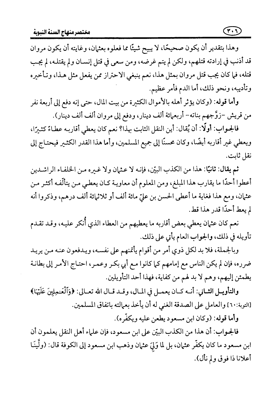 وَعُثْمَانُ أَفْضَلُ مِنْ كُلِّ مَنْ تكلَّم فِيهِ. هُوَ أَفْضَلُ مِنِ ابْنِ مَسْعُودٍ وعمَّار وَأَبِي ذَرٍّ وَمِنْ غَيْرِهِمْ مِنْ وُجُوهٍ كَثِيرَةٍ، كَمَا ثَبَتَ ذَلِكَ بِالدَّلَائِلِ الْكَثِيرَةِ.