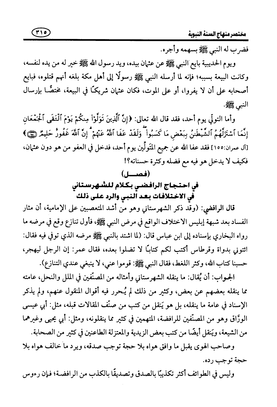 وَأَمَّا قَوْلُهُ: ((إِنَّ الشَّهْرَسْتَانِيَّ مِنْ أَشَدِّ الْمُتَعَصِّبِينَ عَلَى الْإِمَامِيَّةِ)) .