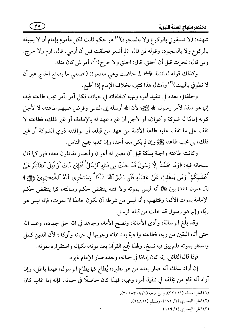 هُنَاكَ مَنْ يَخْلُفُهُ. وَإِنْ قِيلَ إِنَّهُ بَعْدَ مَوْتِهِ لَا يُبَاشِرُ مُعَيَّنًا بِالْأَمْرِ بِخِلَافِ حَيَاتِهِ قِيلَ مُبَاشَرَتُهُ بِالْأَمْرِ لَيْسَتْ شَرْطًا فِي وُجُوبِ طَاعَتِهِ، بَلْ تَجِبُ طَاعَتُهُ عَلَى مَنْ بَلَغَهُ أَمْرُهُ وَنَهْيُهُ كَمَا تَجِبُ طَاعَتُهُ عَلَى مَنْ سَمِعَ كَلَامَهُ.