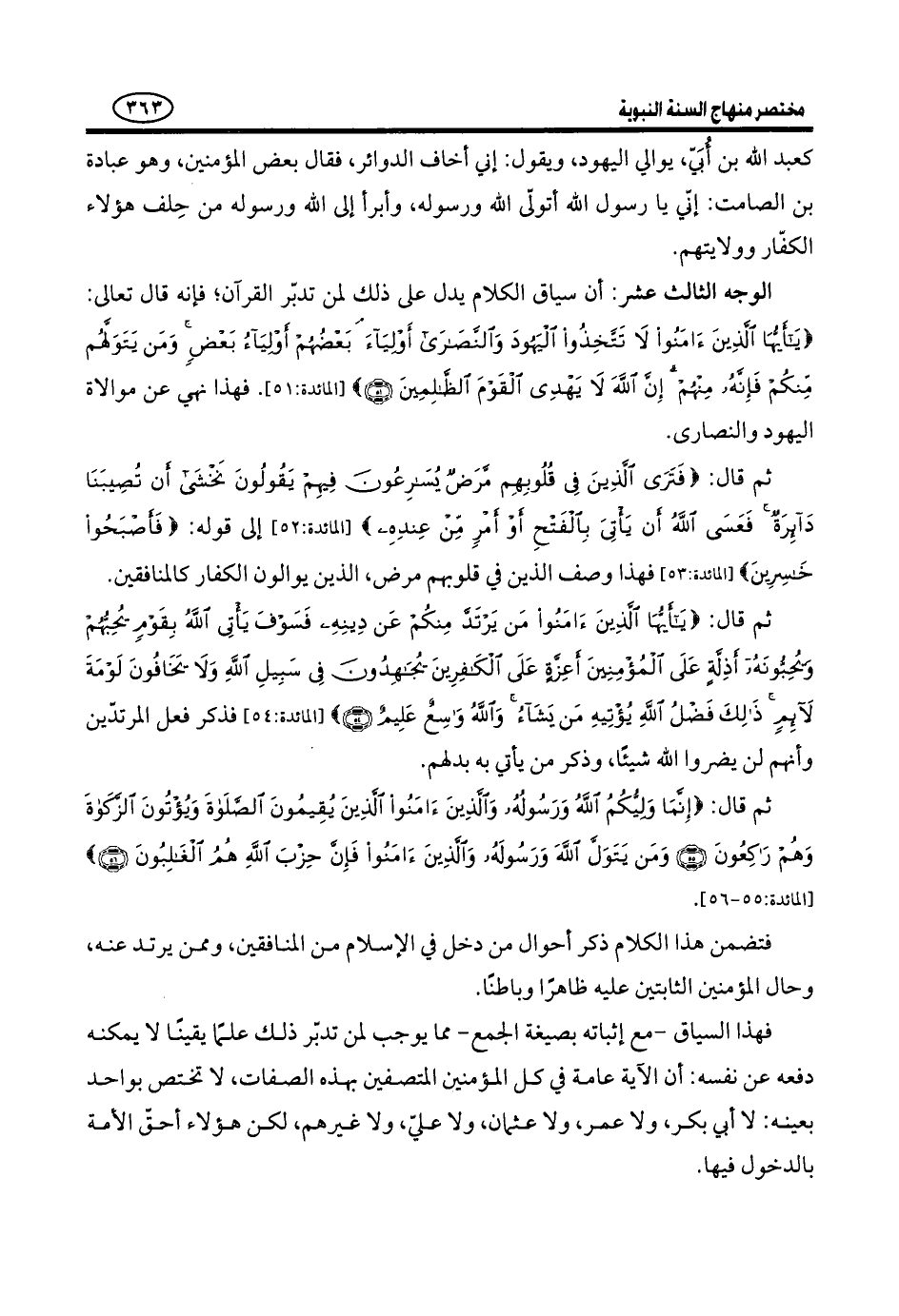 وَكَذَلِكَ قَوْلُهُ: ((مَنْصُورٌ مَنْ نَصَرَهُ، مَخْذُولٌ مَنْ خَذَلَهُ)) هُوَ خلاف الْوَاقِعِ. وَالنَّبِيُّ - صَلَّى اللَّهُ عَلَيْهِ وَسَلَّمَ - لَا يَقُولُ إِلَّا حَقًّا، لَا سِيَّمَا عَلَى قَوْلِ الشِّيعَةِ، فَإِنَّهُمْ يدَّعون أَنَّ الْأُمَّةَ كُلَّهَا خَذَلَتْهُ إلى قتل عثمان.