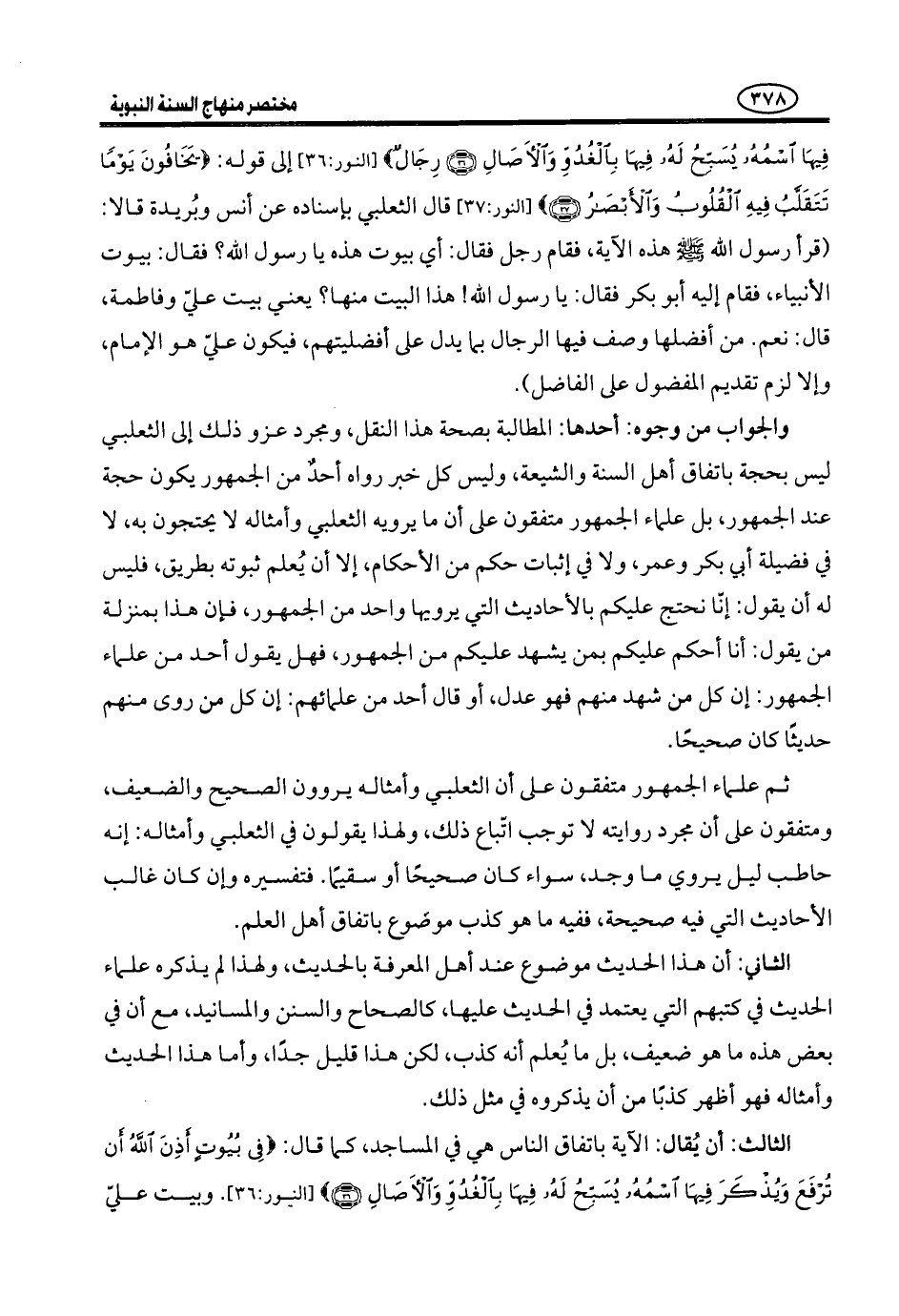 الْوَجْهُ الْخَامِسُ: أَنَّ قَوْلَهُ: ((هِيَ بُيُوتُ الْأَنْبِيَاءِ)) كَذِبٌ، فَإِنَّهُ لَوْ كَانَ كَذَلِكَ لَمْ يَكُنْ لِسَائِرِ الْمُؤْمِنِينَ فِيهَا نَصِيبٌ. وَقَوْلُهُ: {يُسَبِّحُ لَهُ فِيهَا بِالْغُدُوِّ وِاْلآصَالِ رِجَالٌ لاَ تُلْهِيهِمْ تِجَارَةٌ وَلاَ بَيْعٌ عَنْ ذِكْرِ اللَّهِ} (¬3) مُتَنَاوِلٌ لِكُلِّ مَنْ كَانَ بِهَذِهِ الصِّفَةِ.