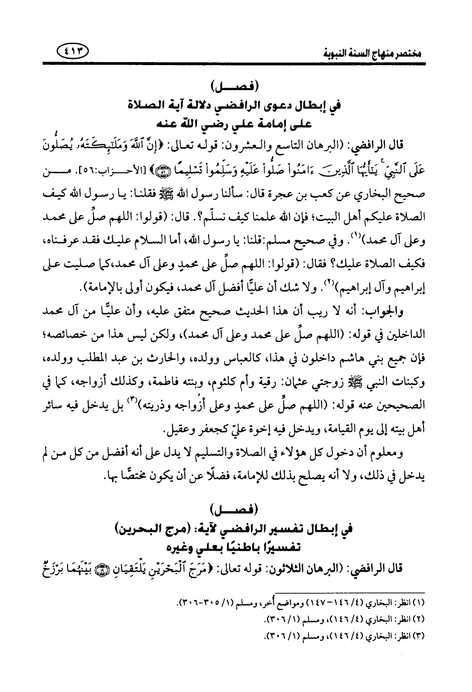 الرَّابِعُ: أَنَّ اللَّهَ ذَكَرَ أَنَّهُ مَرَجَ الْبَحْرَيْنِ فِي آيَةٍ أُخْرَى، فَقَالَ فِي الْفُرْقَانِ: {وَهُوَ الَّذِي مَرَجَ الْبَحْرَيْنِ هَذَا عَذْبٌ فُرَاتٌ وَهَذَا مِلحٌ أُجَاجٌ} (¬6) فَلَوْ أُرِيدَ بِذَلِكَ عَلِيٌّ وَفَاطِمَةُ لَكَانَ ذَلِكَ ذَمًّا لِأَحَدِهِمَا، وَهَذَا بَاطِلٌ بِإِجْمَاعِ أَهْلِ السُّنَّةِ وَالشِّيعَةِ.