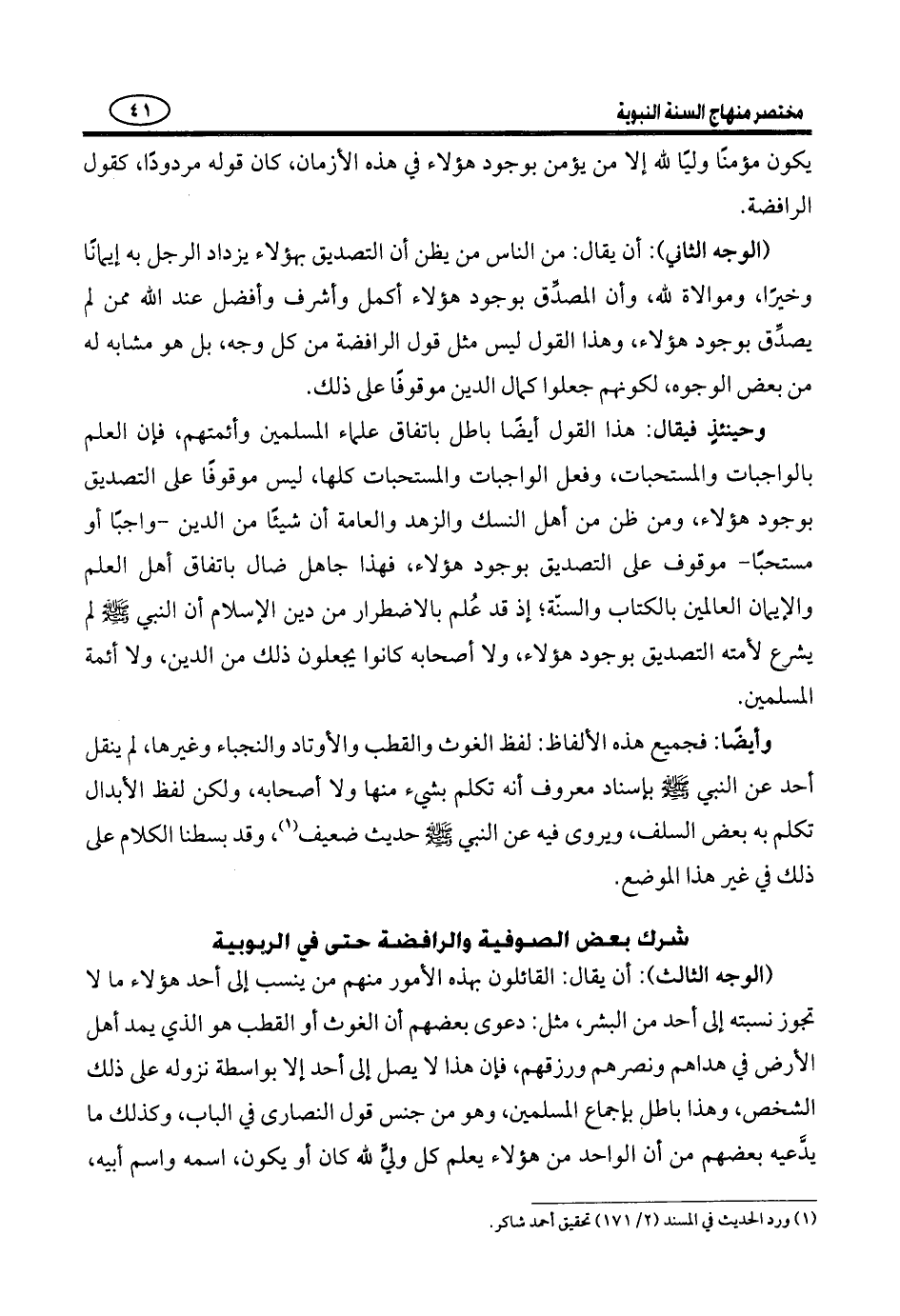وَمِنْهُمْ مَنْ يَنْسُبُ إِلَى الْوَاحِدِ مِنْ هَؤُلَاءِ مَا تَجُوزُ نِسْبَتُهُ إِلَى الْأَنْبِيَاءِ وَصَالِحِي المؤمنين، من الكرامات، كدعوة مجابة ومكاشفات مِنْ مُكَاشَفَاتِ الصَّالِحِينَ، وَنَحْوِ ذَلِكَ فَهَذَا الْقَدْرُ يَقَعُ كَثِيرًا مِنَ الْأَشْخَاصِ الْمَوْجُودِينَ الْمُعَايَنِينَ، وَمَنْ نَسَبَ ذَلِكَ إِلَى مَنْ لَا يُعْرَفُ وُجُودُهُ، فَهَؤُلَاءِ وَإِنْ كَانُوا مُخْطِئِينَ فِي نِسْبَةِ ذَلِكَ إِلَى شَخْصٍ مَعْدُومٍ فَخَطَؤُهُمْ كَخَطَأِ مَنِ اعْتَقَدَ أَنَّ فِي الْبَلَدِ الْفُلَانِيِّ رِجَالًا مِنْ أَوْلِيَاءِ الله تعالى وَلَيْسَ فِيهِ أَحَدٌ، أَوِ اعْتَقَدَ فِي نَاسٍ مُعَيَّنِينَ أَنَّهُمْ أَوْلِيَاءُ اللَّهِ وَلَمْ يَكُونُوا كَذَلِكَ، وَلَا رَيْبَ أَنَّ هَذَا خَطَأٌ وَجَهْلٌ وَضَلَالٌ يَقَعُ فِيهِ كَثِيرٌ مِنَ النَّاسِ، لَكِنَّ خَطَأَ الإمامية وضلالهم أقبح وأعظم.