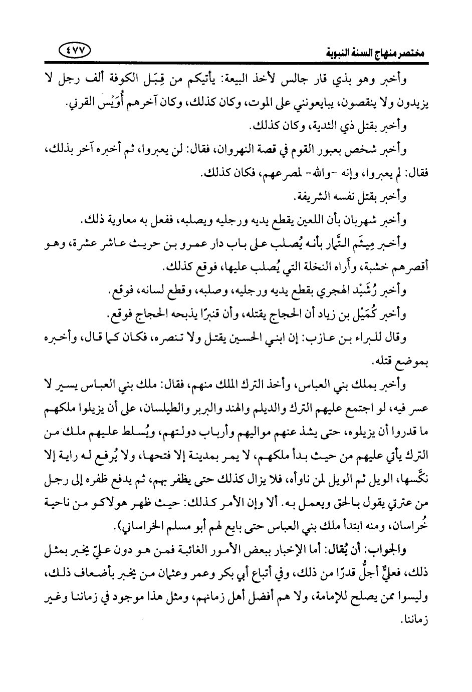 ودعوى الغلاة الَّذِينَ كَانُوا يَدَّعُونَ عِلْمَ عَلِيٍّ بِالْمُسْتَقْبَلَاتِ مُطْلَقًا كَذِبٌ ظَاهِرٌ فَالْعِلْمُ بِبَعْضِهَا لَيْسَ مِنْ خَصَائِصِهِ، وَالْعِلْمُ بِهَا كُلِّهَا لَمْ يَحْصُلْ لَهُ، وَلَا لغيره.