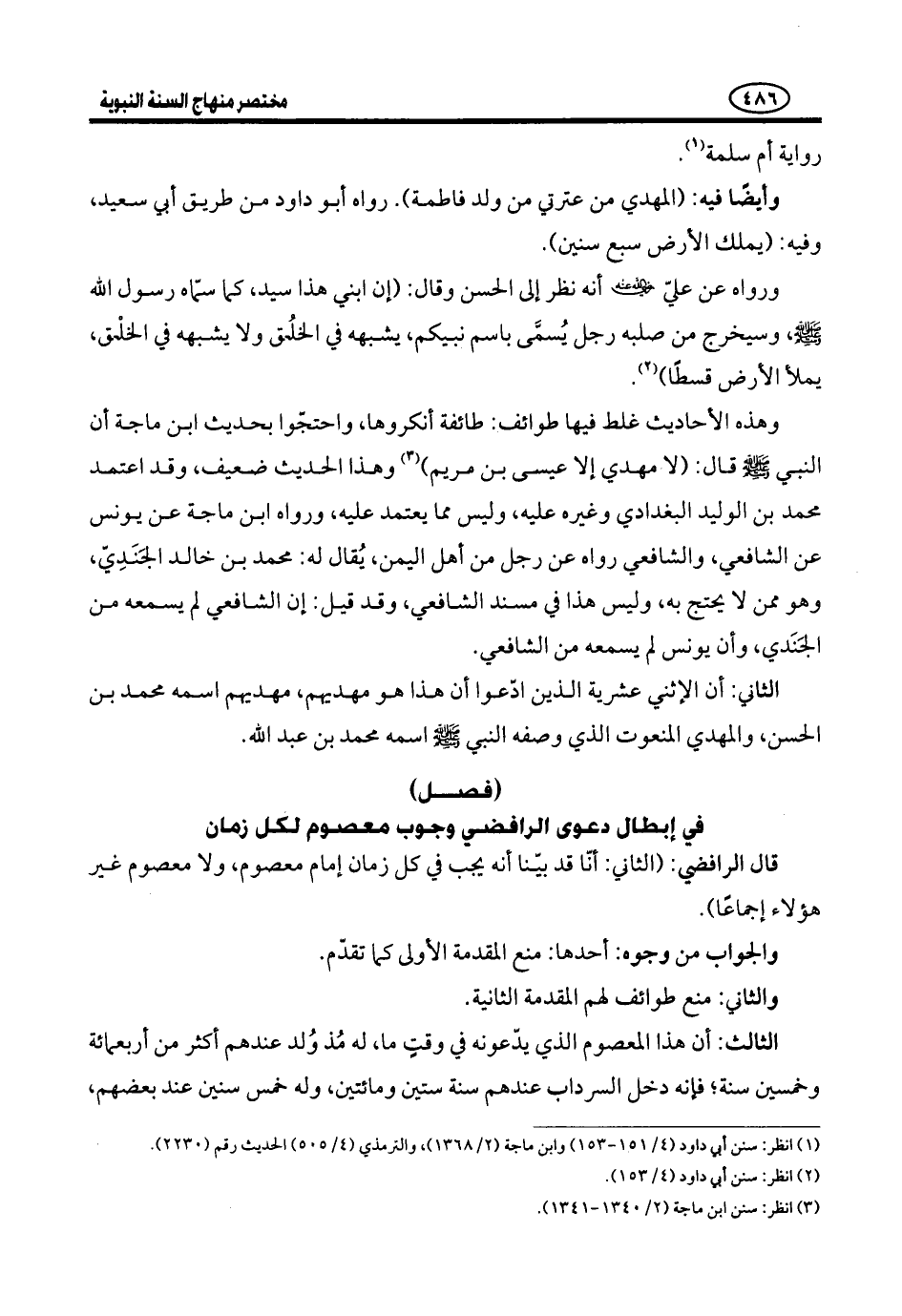 قُلْتُ: وَالْجَوَابُ: أَنَّهُ إِنْ أُرِيدَ بِذَلِكَ أَنَّهُمْ لَمْ يَتَوَلَّوْا عَلَى الْمُسْلِمِينَ، وَلَمْ يُبَايِعْهُمُ الْمُسْلِمُونَ، وَلَمْ يَكُنْ لَهُمْ سُلْطَانٌ يُقِيمُونَ بِهِ الْحُدُودَ، وَيُوَفُّونَ بِهِ الْحُقُوقَ، وَيُجَاهِدُونَ بِهِ الْعَدُوَّ، وَيُصَلُّونَ بِالْمُسْلِمِينَ الْجُمَعَ وَالْأَعْيَادَ، وَغَيْرَ ذَلِكَ مِمَّا هُوَ دَاخِلٌ فِي مَعْنَى الْإِمَامَةِ - فَهَذَا بُهت وَمُكَابَرَةٌ. فَإِنَّ هَذَا أَمْرٌ مَعْلُومٌ بِالتَّوَاتُرِ، وَالرَّافِضَةُ وَغَيْرُهُمْ يَعْلَمُونَ ذَلِكَ، وَلَوْ لَمْ يَتَوَلَّوُا الْإِمَامَةَ لَمْ تَقْدَحْ فِيهِمُ الرَّافِضَةُ.