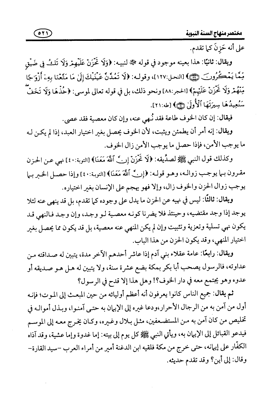 وَأَبُو بَكْرٍ مَعَهُ دَائِمًا لَيْلًا وَنَهَارًا، حَضَرًا وَسَفَرًا، فِي خَلْوَتِهِ وَظُهُورِهِ. وَيَوْمَ بَدْرٍ يَكُونُ مَعَهُ وَحْدَهُ فِي الْعَرِيشِ، وَيَكُونُ فِي قلبه ضمير سيئ، وَالنَّبِيُّ - صَلَّى اللَّهُ عَلَيْهِ وَسَلَّمَ - لَا يَعْلَمُ ضمير ذلك قط، ومن له أدنى نَوْعُ فِطْنَةٍ يَعْلَمُ ذَلِكَ فِي أَقَلِّ مِنْ هَذَا الِاجْتِمَاعِ، فَهَلْ يَظُن ذَلِكَ بِالنَّبِيِّ - صَلَّى اللَّهُ عَلَيْهِ وَسَلَّمَ - وصدِّيقه إِلَّا مَنْ هُوَ - مَعَ فَرْطِ جَهْلِهِ وَكَمَالِ نَقْصِ عَقْلِهِ - مِنْ أَعْظَمِ النَّاسِ تَنَقُّصًا لِلرَّسُولِ، وَطَعْنًا فِيهِ، وَقَدْحًا في معرفته؟ ّ فَإِنْ كَانَ هَذَا الْجَاهِلُ - مَعَ ذَلِكَ - مُحِبًّا للرسول، فَمَنْ لَهُ أَدْنَى خِبْرَةٍ بِدِينِ الْإِسْلَامِ يَعْلَمُ أن مذهب الرافضة مناقض له (¬1) .