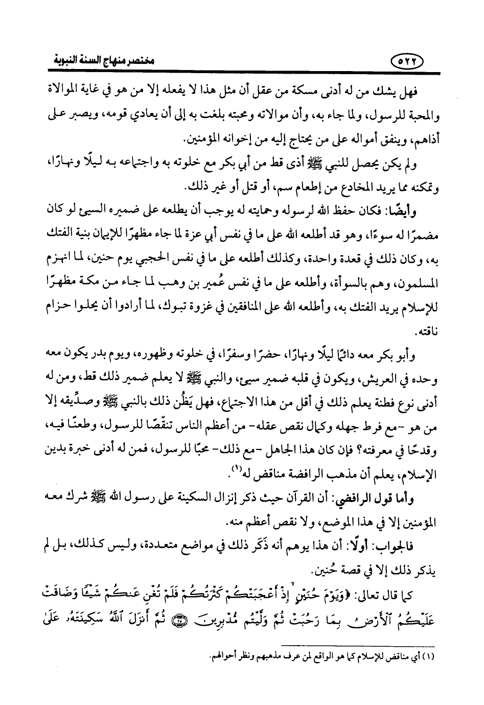 وَيُقَالُ: ثَانِيًا: النَّاسُ قَدْ تَنَازَعُوا فِي عَوْد الضَّمِيرِ فِي قَوْلِهِ تَعَالَى: {فَأَنْزَلَ اللَّهُ سَكِينَتَهُ عَلَيْهِ} ((¬5) . فَمِنْهُمْ مَنْ قَالَ: إِنَّهُ عَائِدٌ إِلَى النَّبِيِّ - صَلَّى اللَّهُ عَلَيْهِ وَسَلَّمَ -.