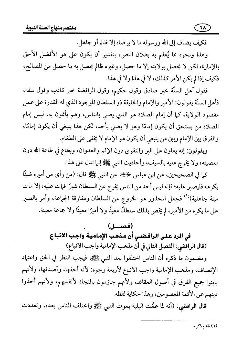 وَحَيْثُ حَصَلَ لِلْمُسْلِمِينَ هَذِهِ الْبَلِيَّةُ، وَجَبَ عَلَى كُلِّ أَحَدٍ النَّظَرُ فِي الْحَقِّ وَاعْتِمَادُ الْإِنْصَافِ، وَأَنْ يُقِرَّ الْحَقَّ مُسْتَقَرَّهُ، وَلَا يَظْلِمُ مُسْتَحِقَّهُ، فَقَدْ قَالَ تَعَالَى: {أَلاَ لَعْنَةُ اللهِ عَلَى الظَّالِمِين} (¬3) وإنما كان مذهب الإمامية واجب الاتباع لوجوه هذا لفظه.