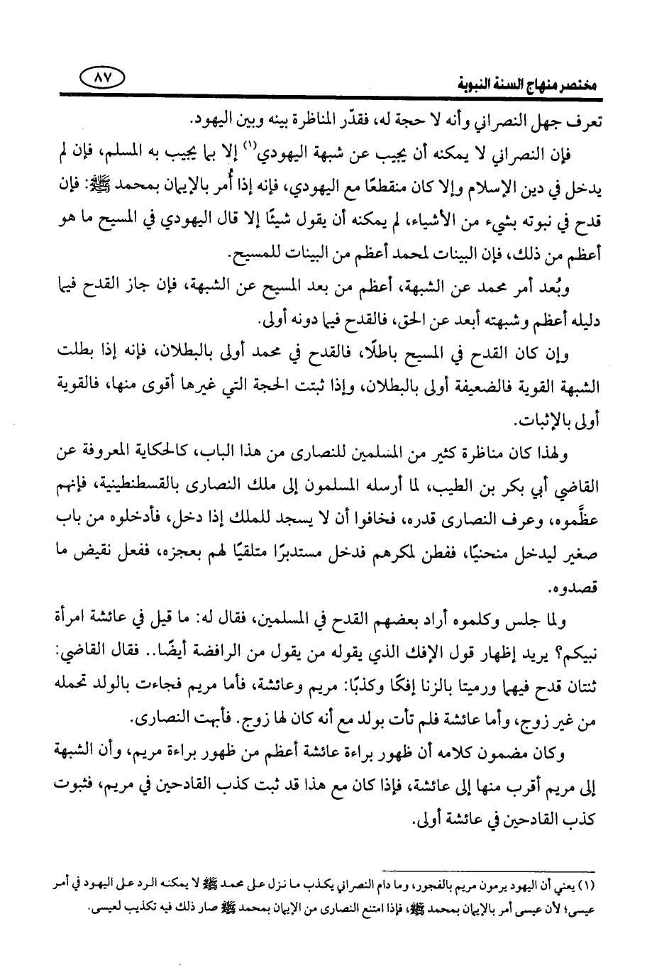 وَإِلَّا فَمَتَى أَرَادَ إِثْبَاتَ ذَلِكَ لَعَلِيٍّ وَحْدَهُ لَمْ تُسَاعِدْهُ الْأَدِلَّةُ، كَمَا أَنَّ النَّصْرَانِيَّ إِذَا أَرَادَ إِثْبَاتَ نُبُوَّةَ الْمَسِيحِ دُونَ مُحَمَّدٍ لَمْ تساعده الأدلة.