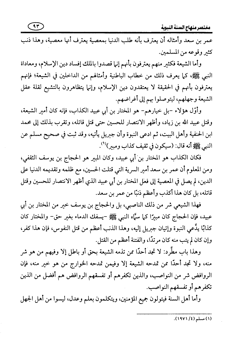 وَلَا مِنْ أَهْلِ الْأَهْوَاءِ، وَيَتَبَرَّءُونَ مِنْ طَرِيقَةِ الروافض والنواصب جميعا، ويتولون السابقين الأولين كُلَّهُمْ، وَيَعْرِفُونَ قَدْرَ الصَّحَابَةِ، وَفَضْلَهُمْ، وَمَنَاقِبَهُمْ، وَيَرْعَوْنَ حُقُوقَ أَهْلِ الْبَيْتِ الَّتِي شَرَعَهَا اللَّهُ لَهُمْ، ولا يرضون بما فعله المختار ونحو من الكذابين، ولا ما فعل الْحَجَّاجُ وَنَحْوُهُ مِنَ الظَّالِمِينَ.