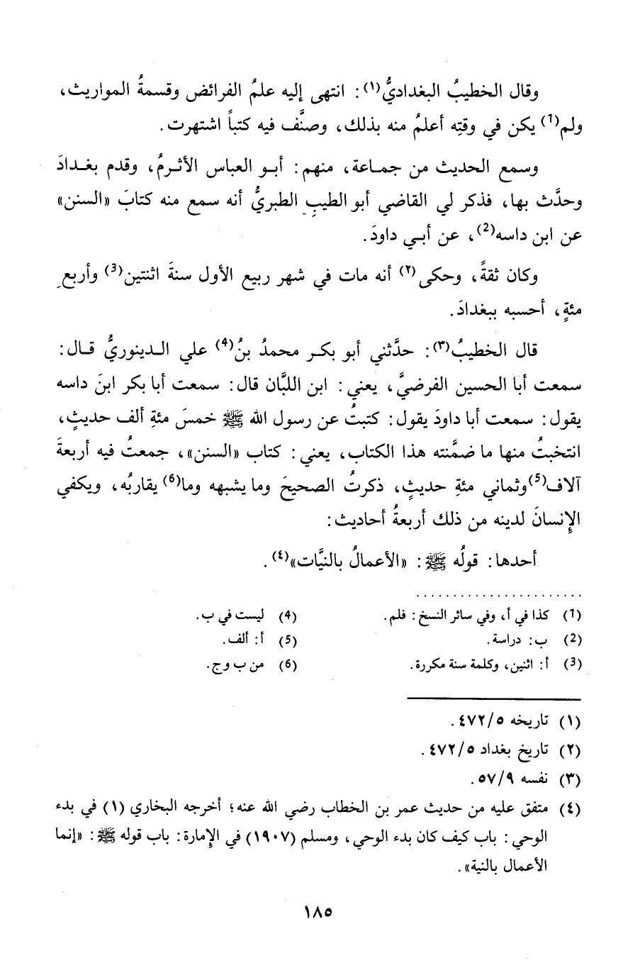 أَحدهَا: قَوْله صلى الله عَلَيْهِ وَسلم: " الْأَعْمَال بِالنِّيَّاتِ ".
