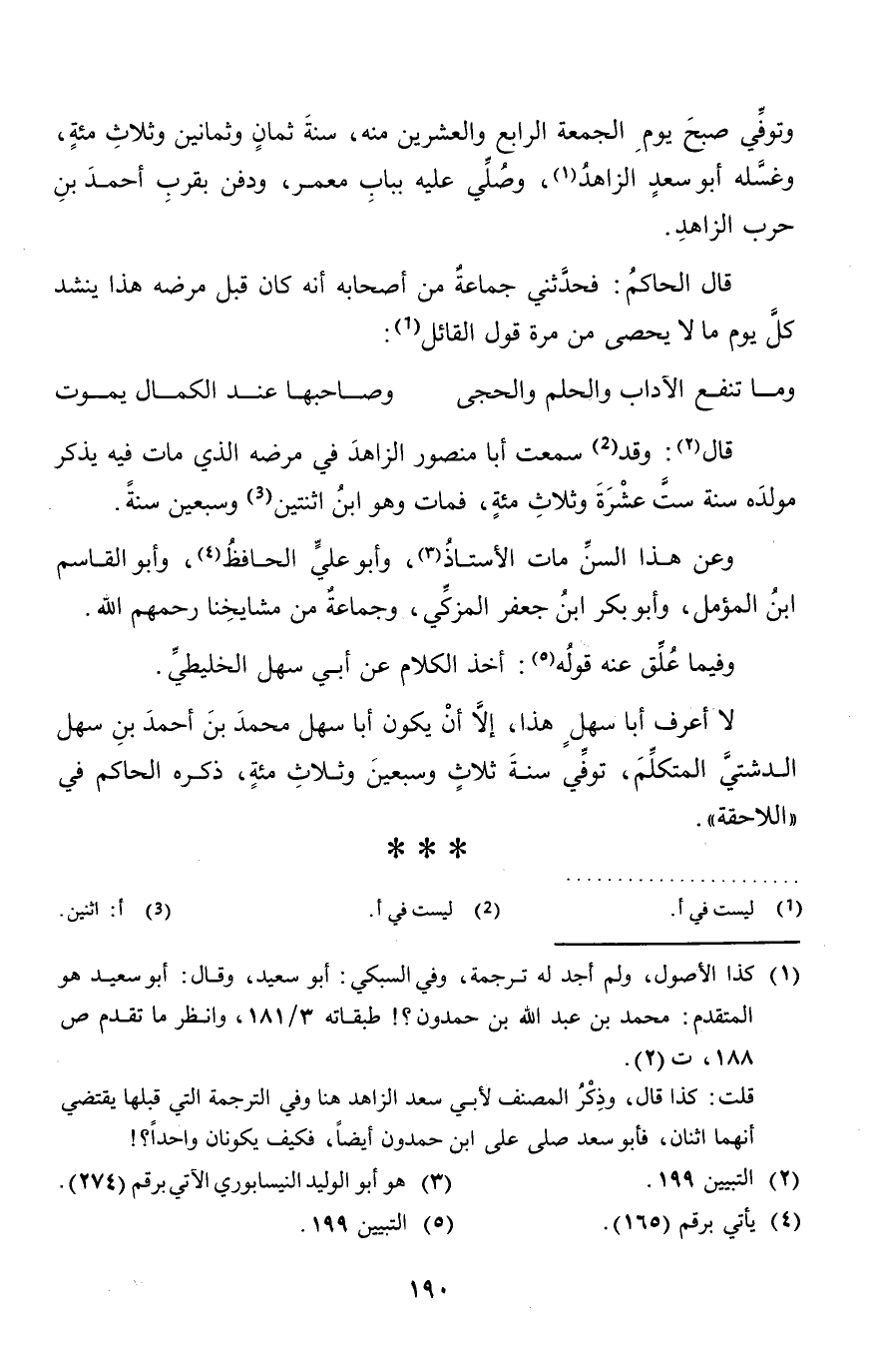 قَالَ: وَقد سَمِعت أَبَا مَنْصُور الزَّاهِد فِي مَرضه الَّذِي مَاتَ فِيهِ يذكر مولده سنة سِتّ عشرَة وَثَلَاث مئة، فَمَاتَ وَهُوَ ابْن اثْنَتَيْنِ وَسبعين سنة.