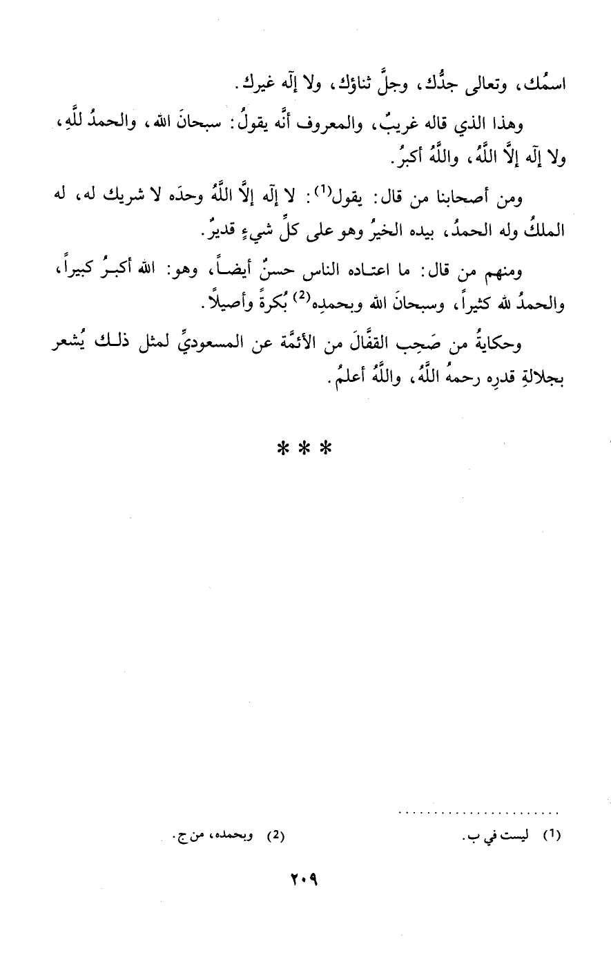 وَمن أَصْحَابنَا من قَالَ: يَقُول: لَا إِلَه إِلَّا الله وَحده لَا شريك لَهُ، لَهُ الْملك وَله الْحَمد، بِيَدِهِ الْخَيْر وَهُوَ على كل شَيْء قدير
