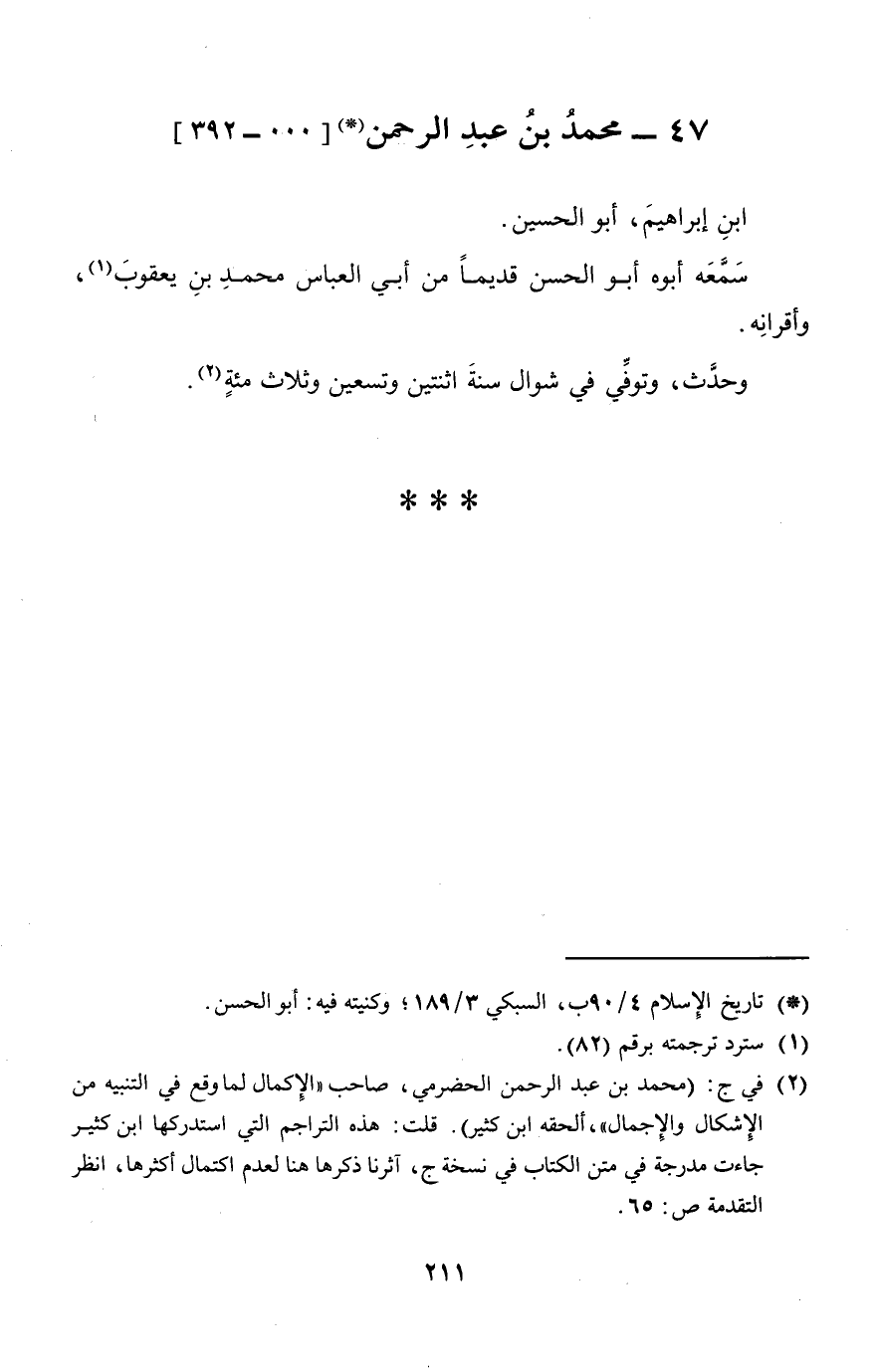 (47 - مُحَمَّد بن عبد الرَّحْمَن [000 - 392] )