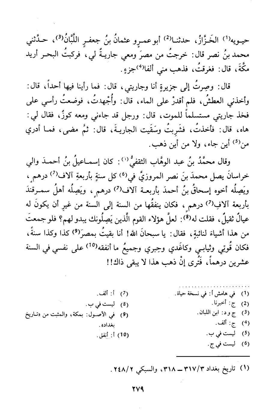 حيويه الخزاز، حَدثنَا أَبُو عَمْرو عُثْمَان بن جَعْفَر اللبان، حَدثنِي مُحَمَّد بن نصر قَالَ: خرجت من مصر وَمَعِي جَارِيَة لي، فركبت الْبَحْر أُرِيد مَكَّة، قَالَ: فغرقت، فَذهب مني ألقا جُزْء.