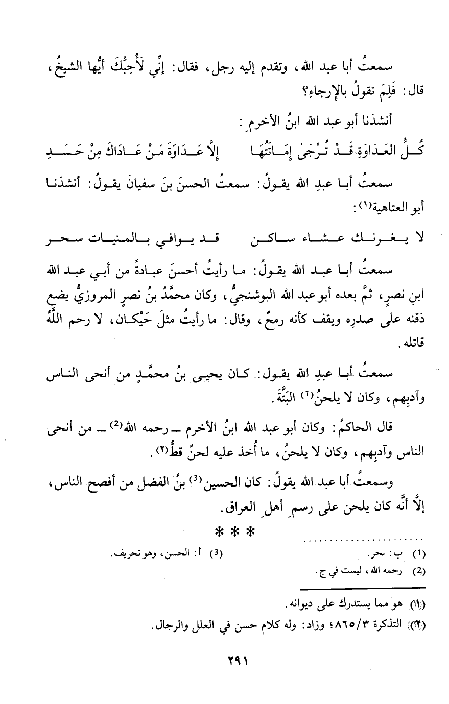 " سَمِعت أَبَا عبد الله يَقُول: سَمِعت الْحسن بن سُفْيَان يَقُول: أنشدنا أَبُو الْعَتَاهِيَة:
