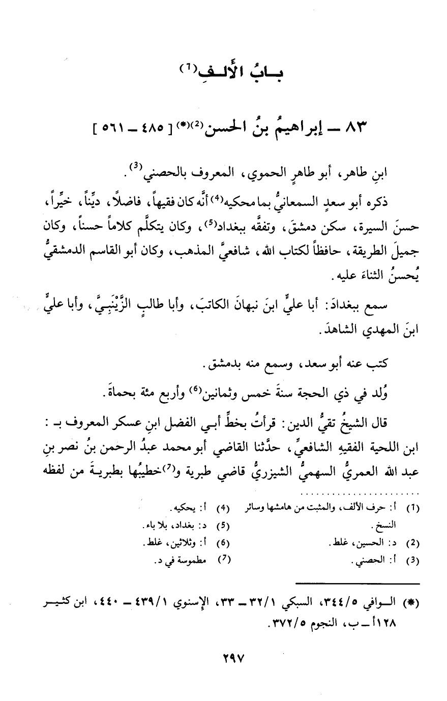 (83 - إِبْرَاهِيم بن الْحسن [485 - 561] )