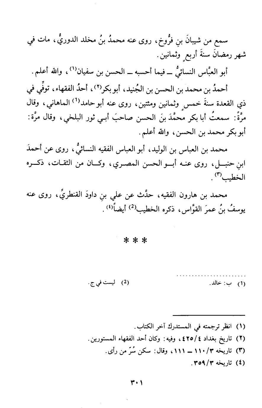 مُحَمَّد بن الْعَبَّاس بن الْوَلِيد، أَبُو الْعَبَّاس الْفَقِيه النَّسَائِيّ، روى عَن أَحْمد ابْن حَنْبَل، روى عَنهُ أَبُو الْحسن الْمصْرِيّ، وَكَانَ من الثِّقَات، ذكره الْخَطِيب.