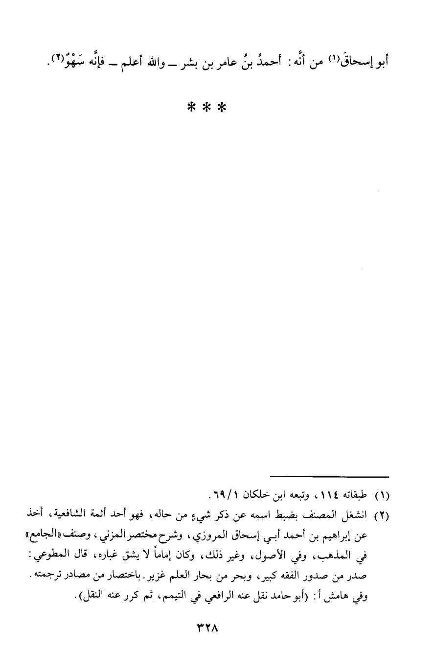 أَبُو إِسْحَاق من أَنه: أَحْمد بن عَامر بن بشر - وَالله أعلم - فَإِنَّهُ سَهْو.