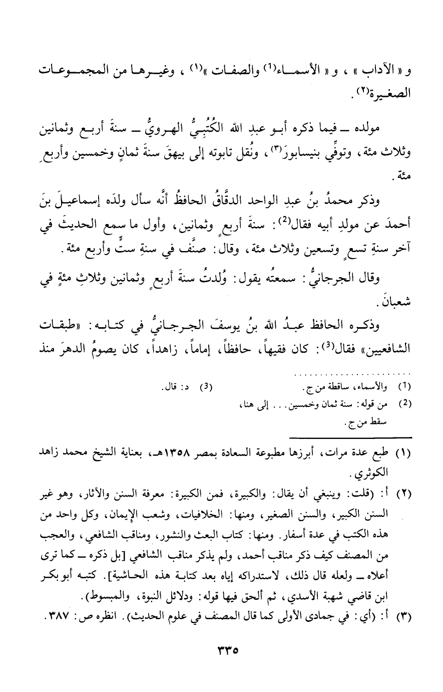 وَقَالَ الْجِرْجَانِيّ: سمعته يَقُول: ولدت سنة أَربع وَثَمَانِينَ وَثَلَاث مئة فِي شعْبَان.