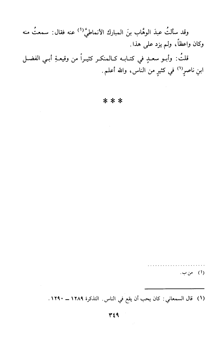 قلت: وَأَبُو سعد فِي كِتَابه كالمنكر كثيرا من وقيعة أبي الْفضل ابْن نَاصِر فِي كثير من النَّاس، وَالله أعلم.