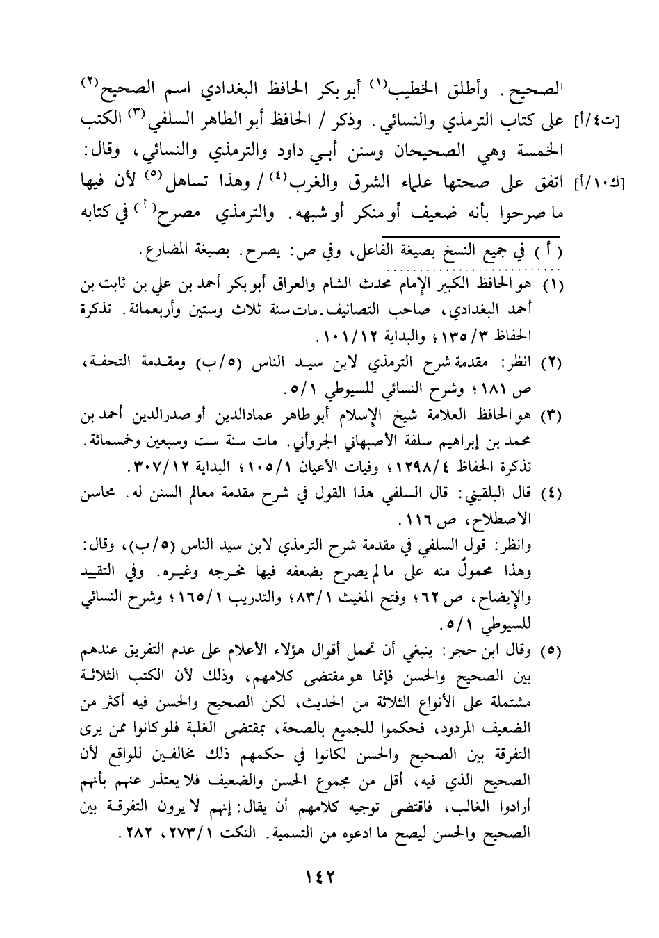 (¬4) قال البلقيني: قال السلفي هذا القول في شرح مقدمة معالم السنن له. محاسن الاصطلاح، ص 116.
