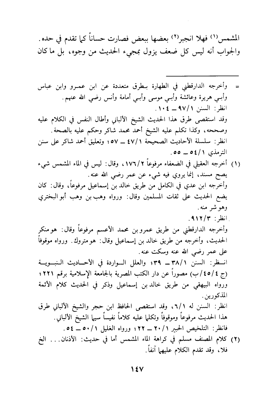 (¬1) أخرجه العقيلي في الضعفاء مرفوعًا 2/ 176، وقال: ليس في الماء المشمس شيء يصح مسند، إنما يروي فيه شيء عن عمر رضي الله عنه.