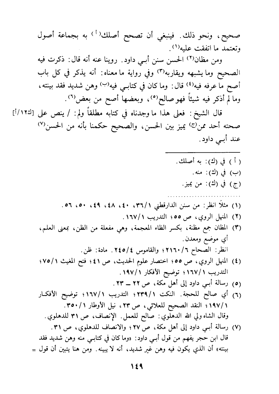 (¬7) رسالة أبي داود إلى أهل مكة، ص 27؛ والانصاف للدهلوي، ص 31.