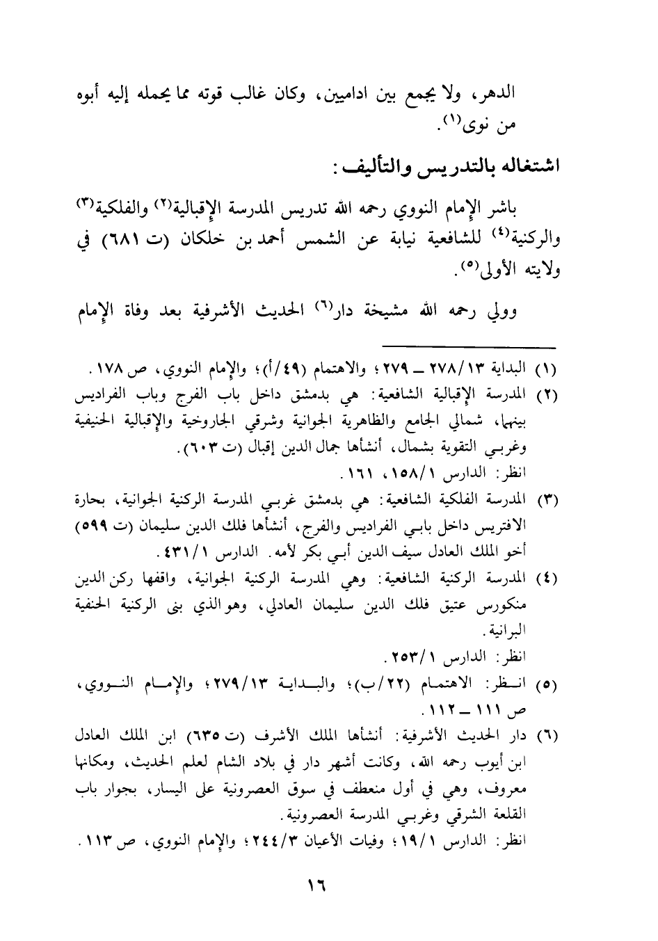 (¬5) انظر: الاهتمام (22/ ب)؛ والبداية 13/ 279؛ والإِمام النووي، ص 111 - 112.
