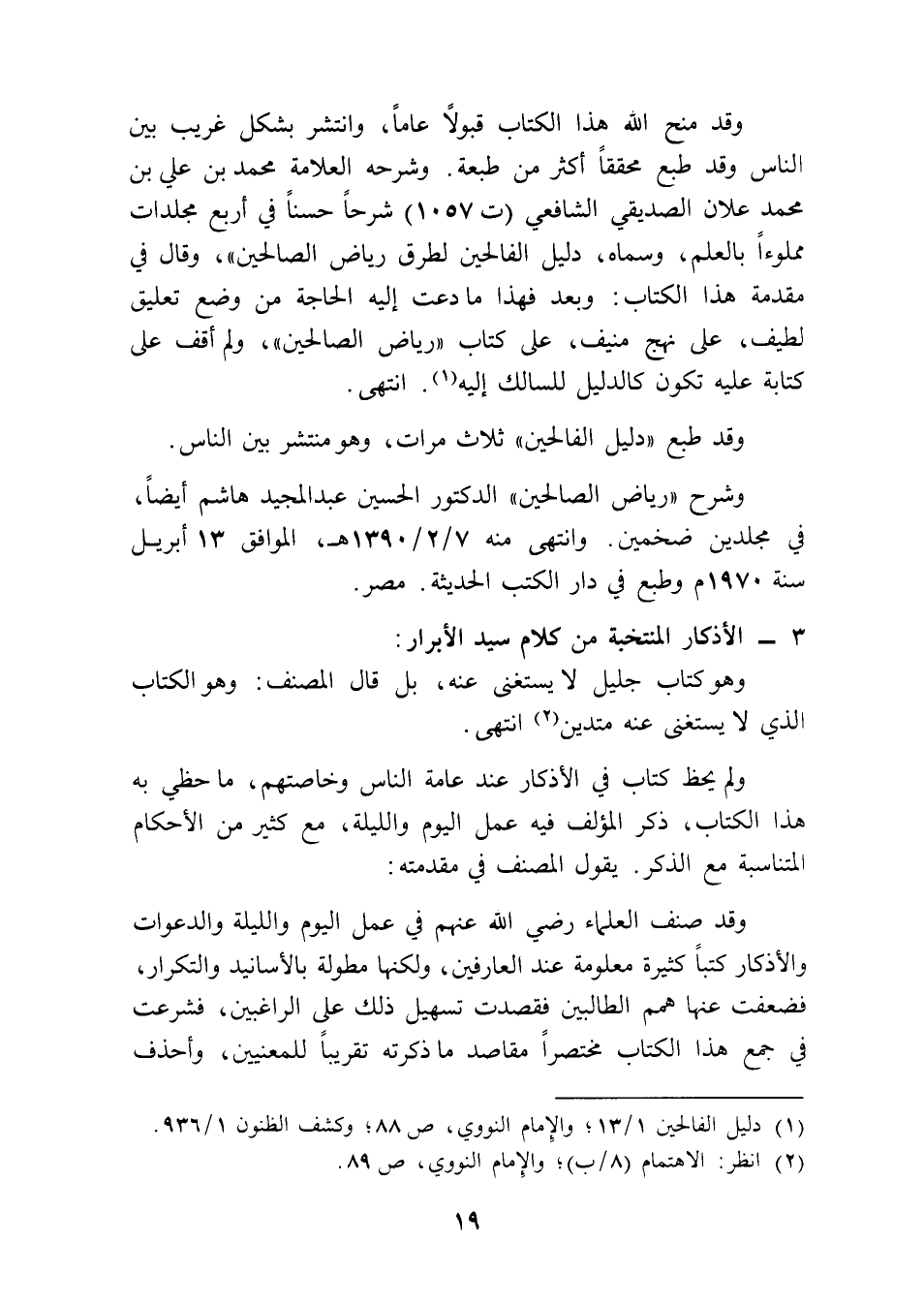 (¬1) دليل الفالحين 1/ 13؛ والإِمام النووي، ص 88؛ وكشف الظنون 1/ 936.