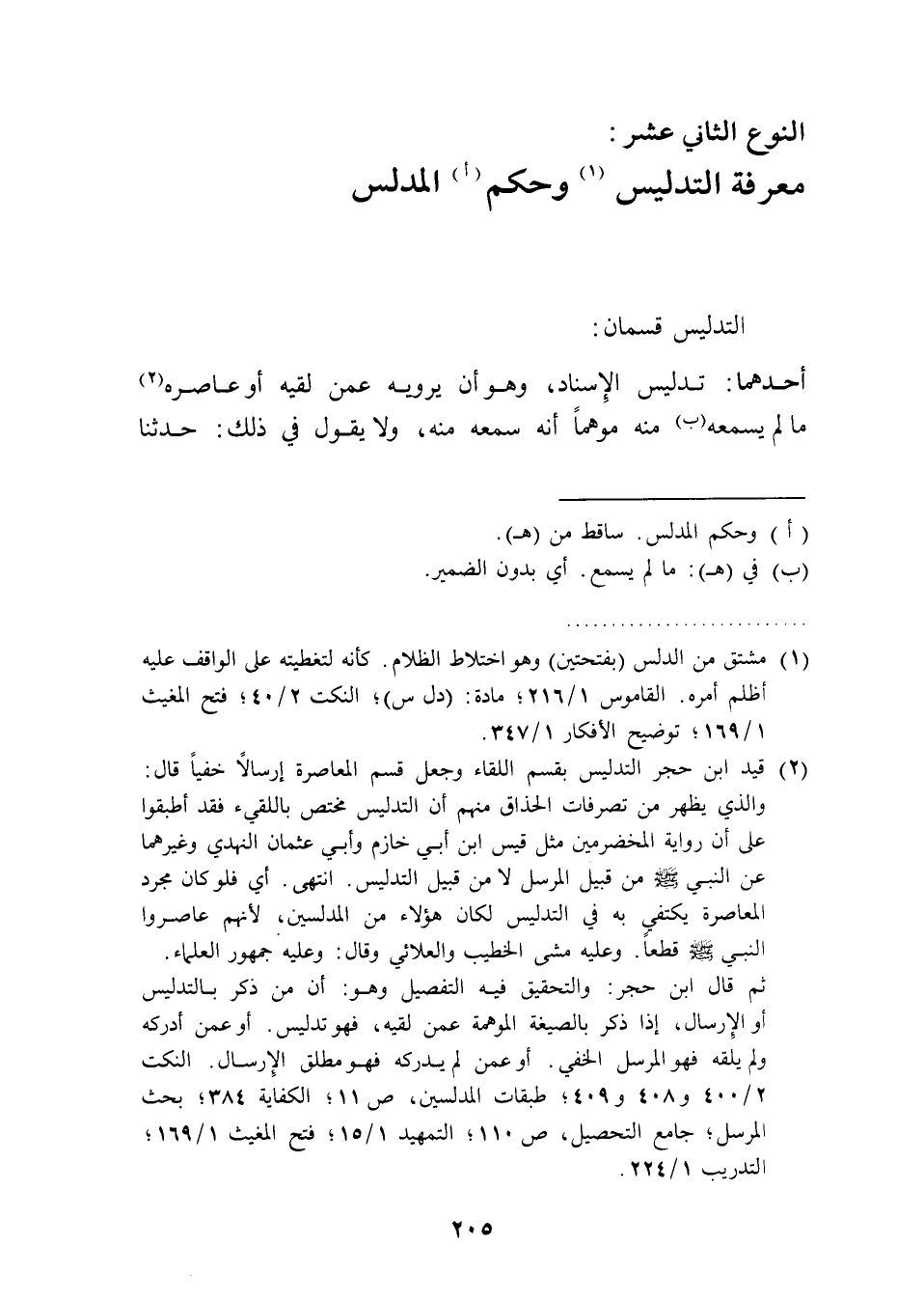 النوع الثاني عشر: معرفة التدليس (¬1) وحكم (أ) المدلس