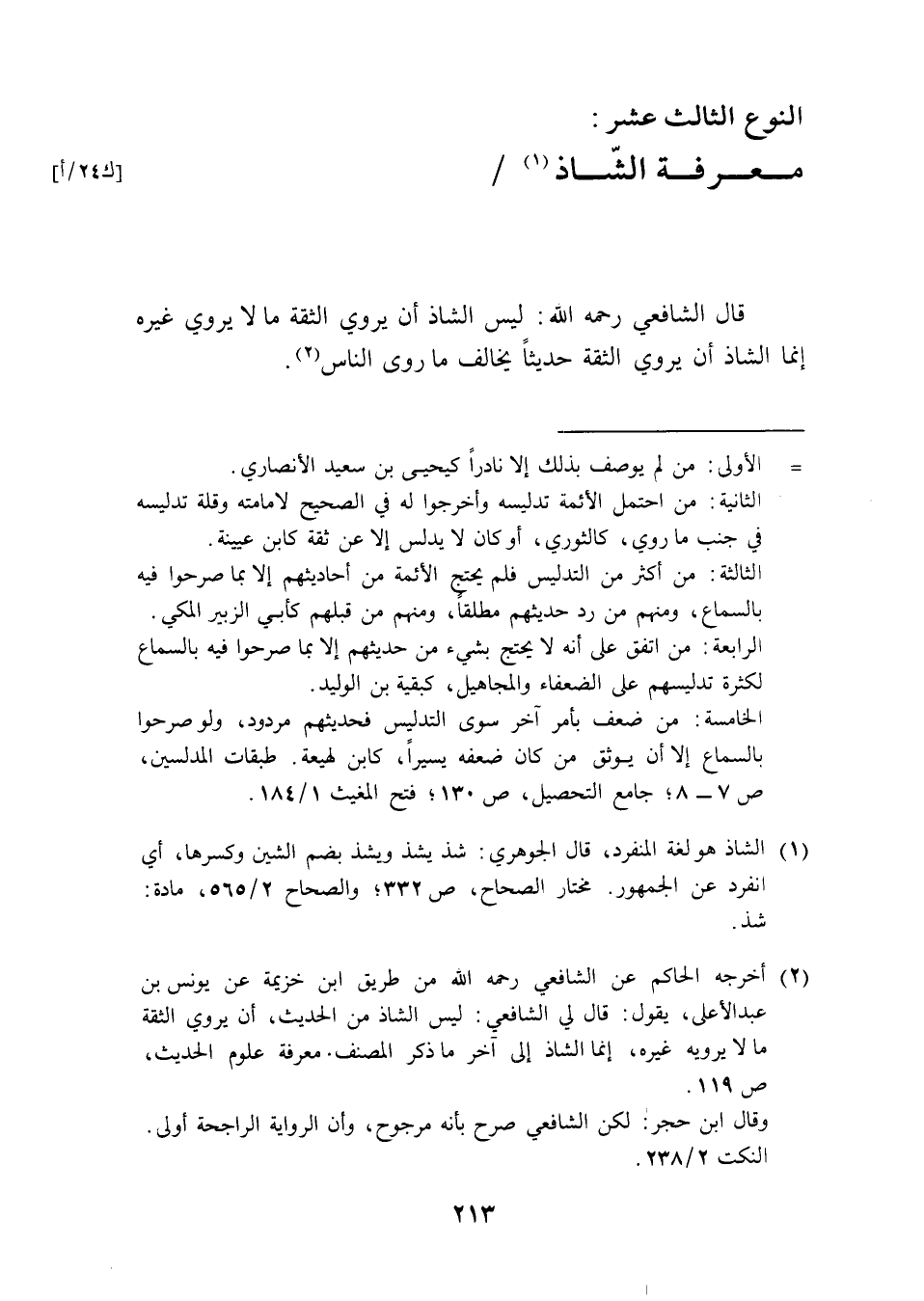 النوع الثالث عشر: معرفة الشّاذ (¬1)